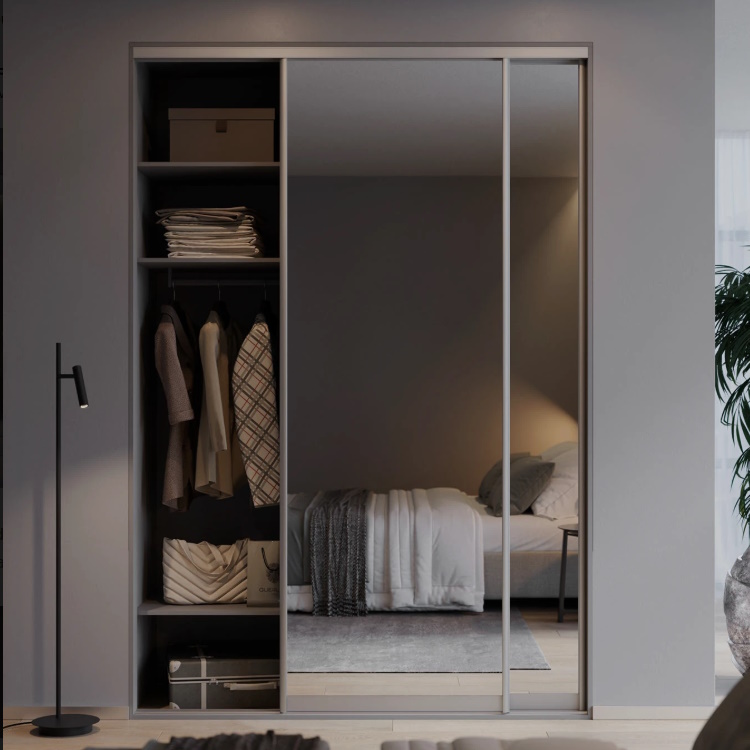Дверь-купе ARISTO С, зеркало, профиль кашемир серый