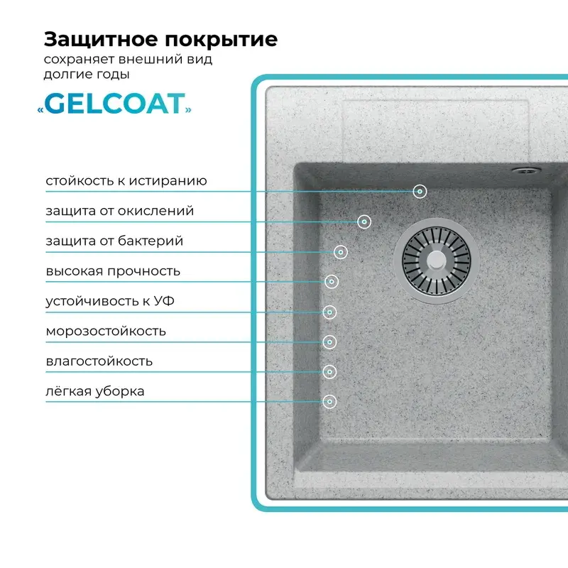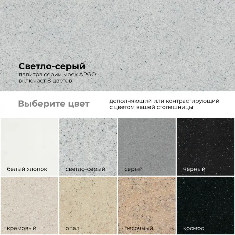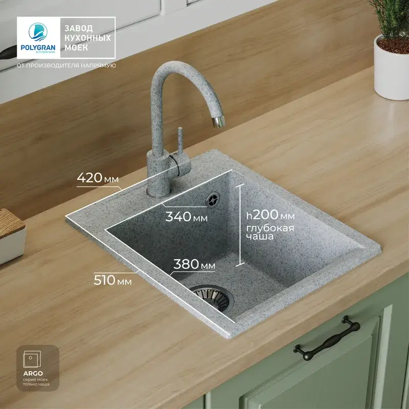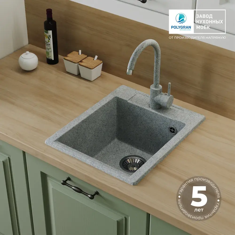 Мойка POLYGRAN ARGO-420 светло-серый №314, смеситель SKS5 светло-серый