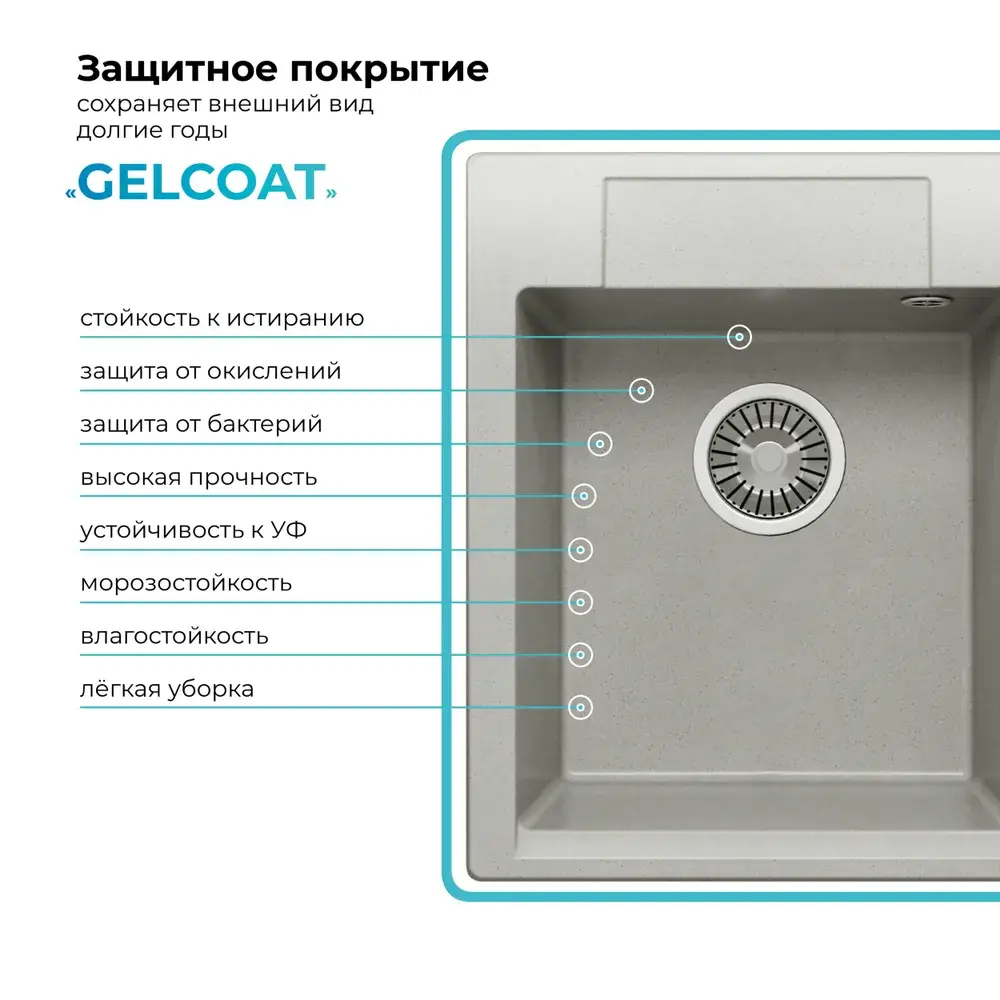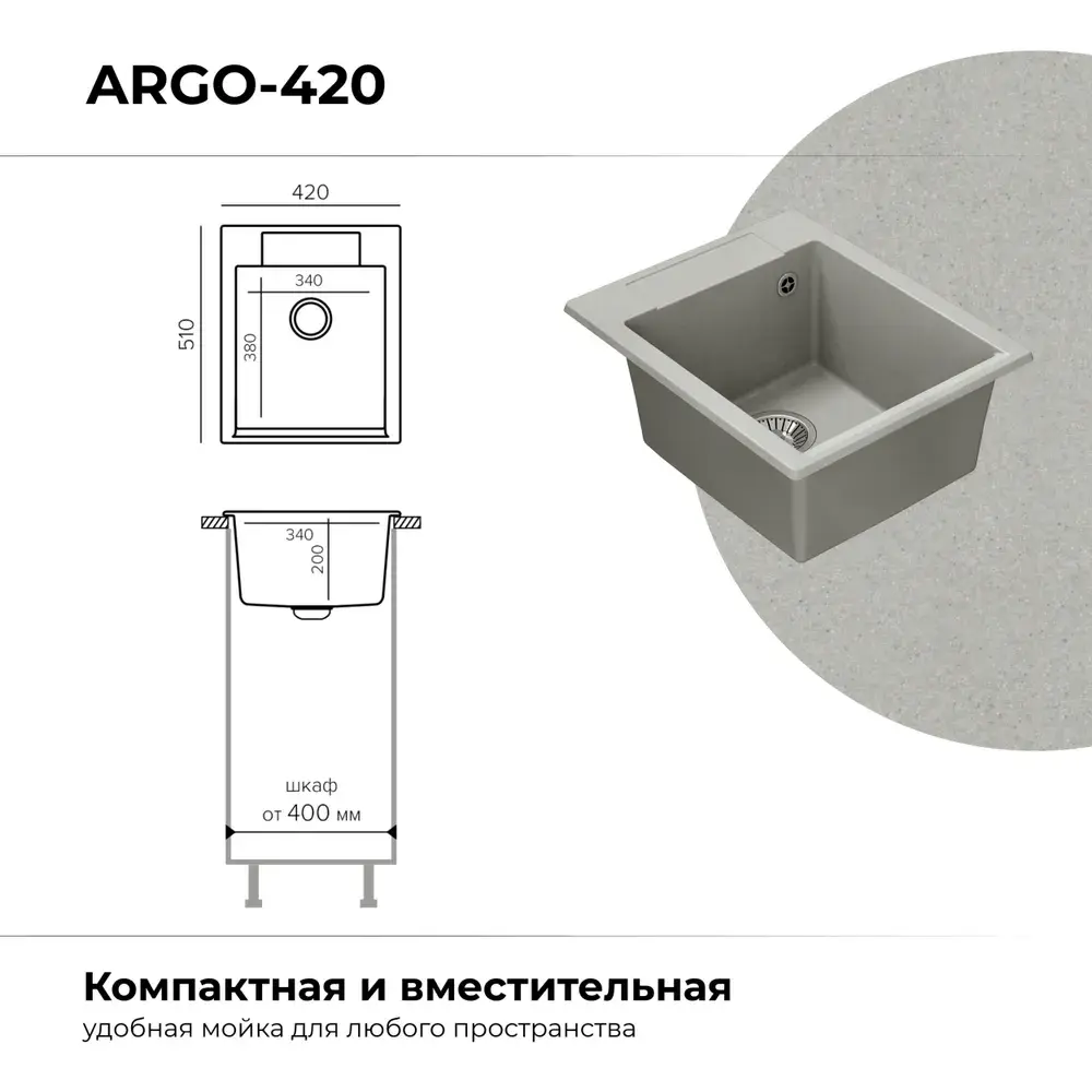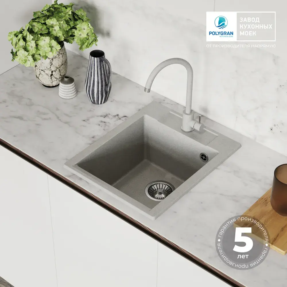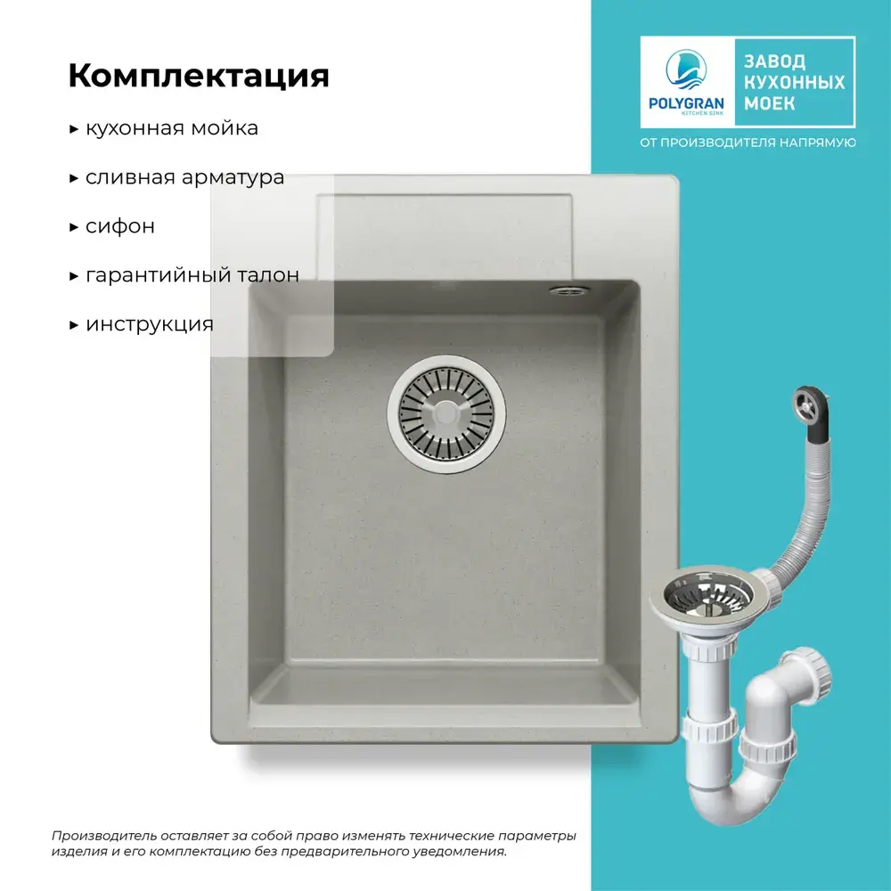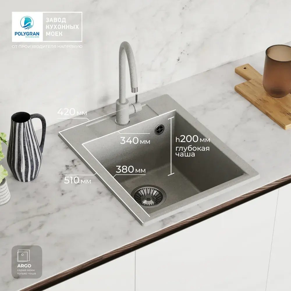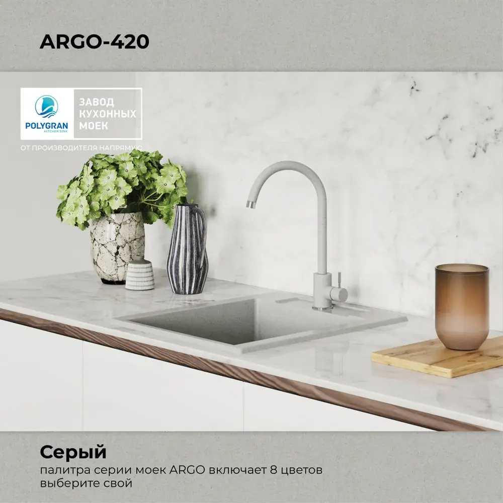 Мойка POLYGRAN ARGO-420 серый №14, смеситель SKS5 серый