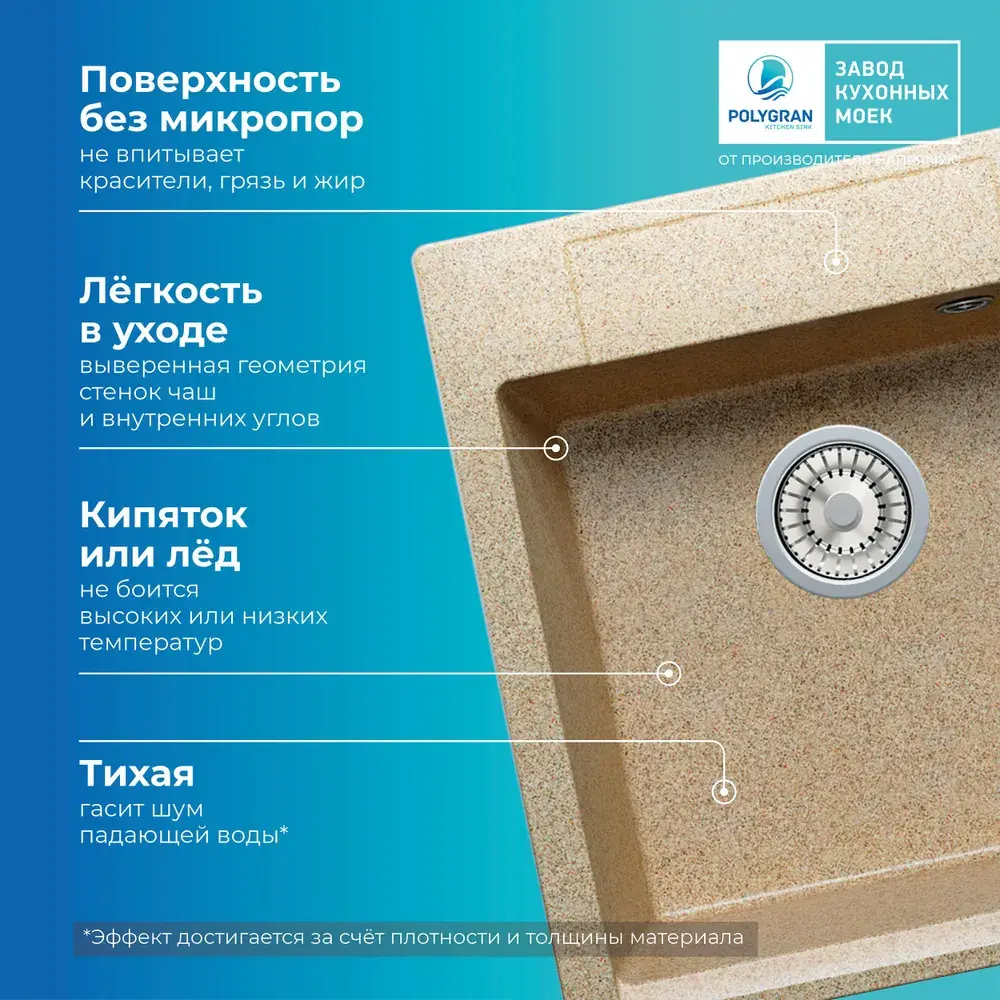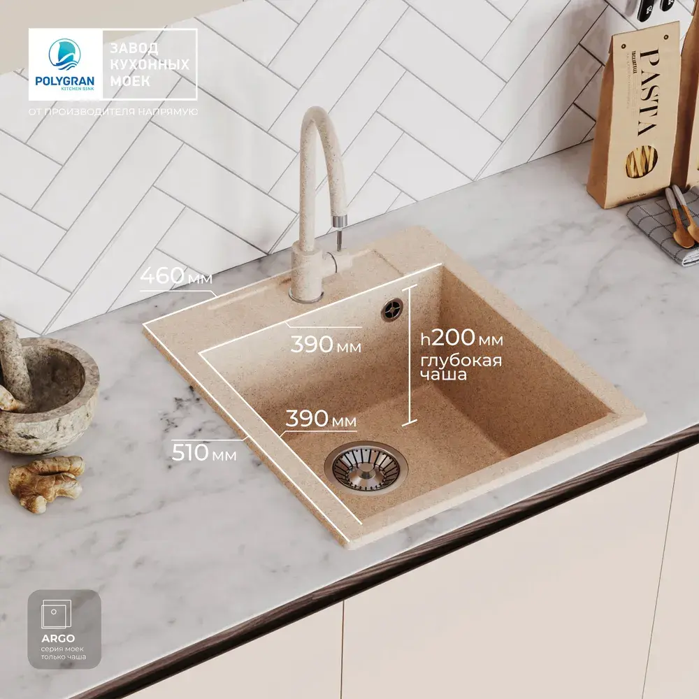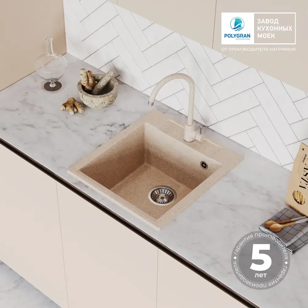 Мойка POLYGRAN ARGO-460 песочный №302, смеситель SKS5 песочный №302