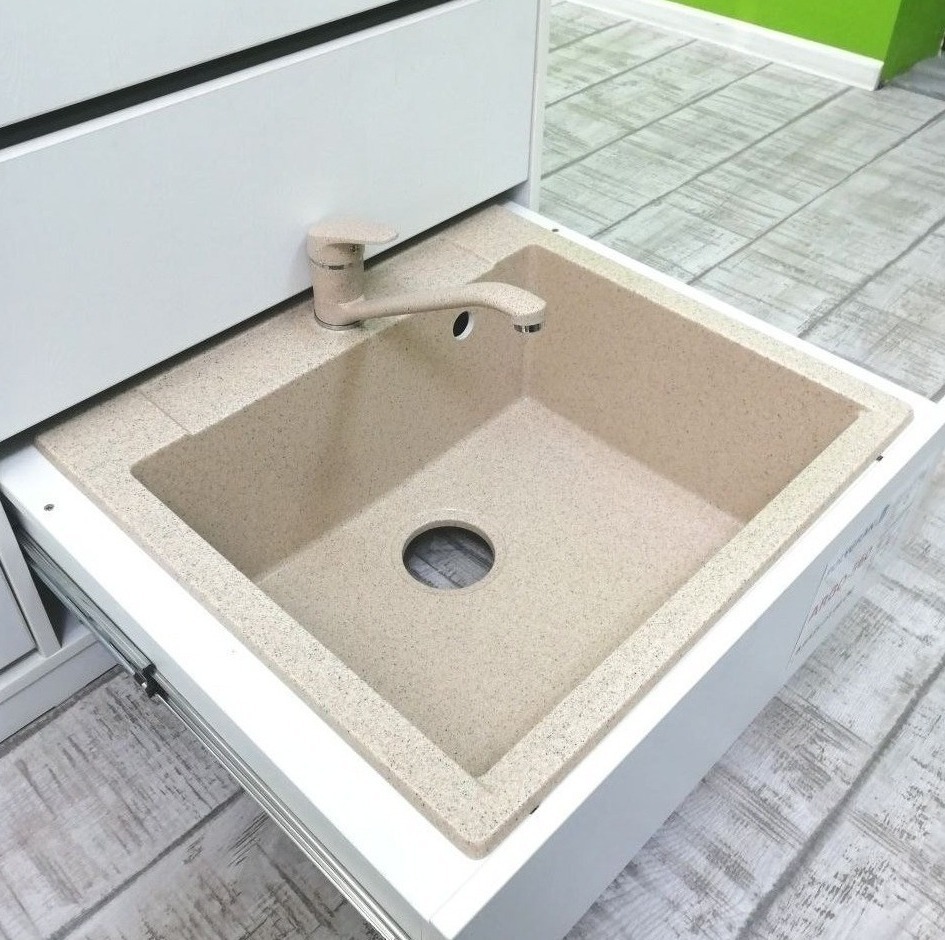 Мойка POLYGRAN ARGO-560 песочный №302, смеситель НИЗКИЙ КРАН ЭКО песочный