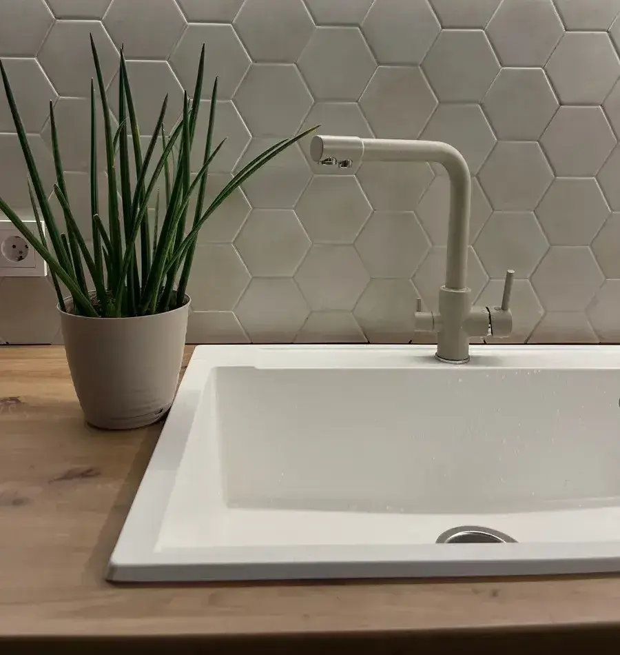 Мойка POLYGRAN ARGO-760 белый хлопок №36, cмеситель DORADO сафари