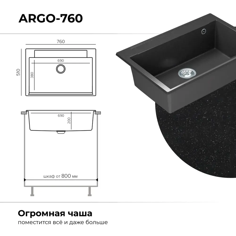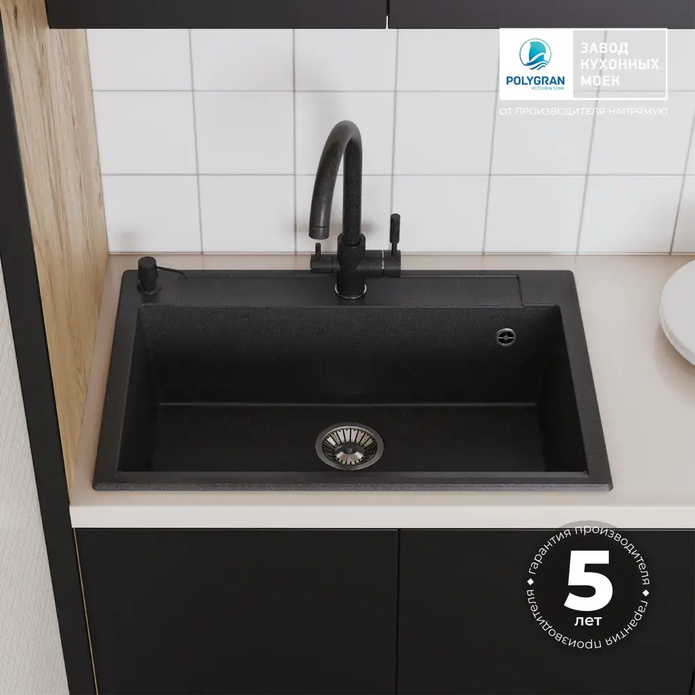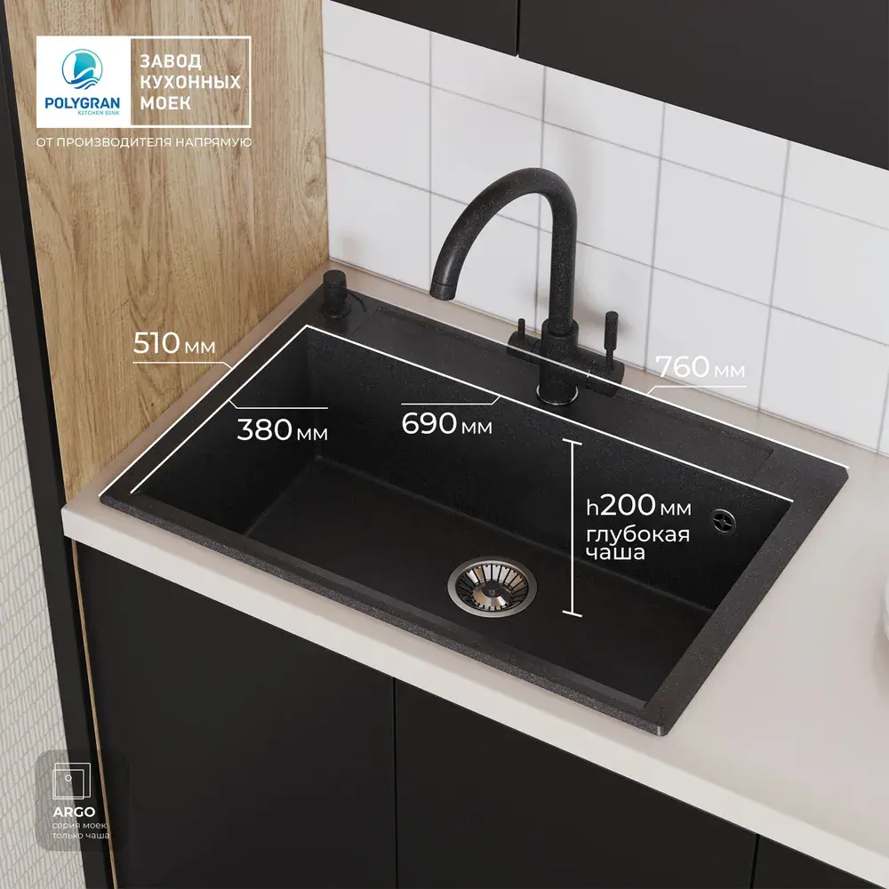 Мойка POLYGRAN ARGO-760 черный №16, смеситель COLORADO черный