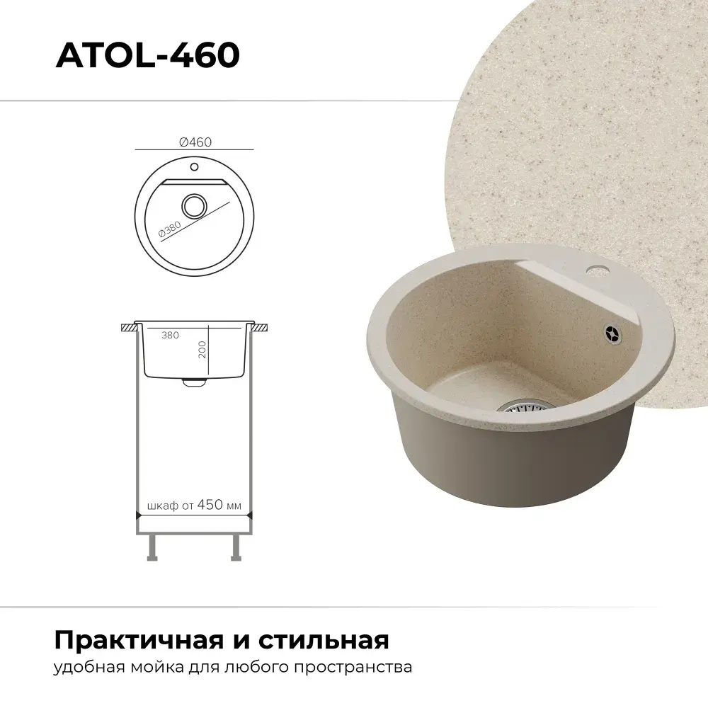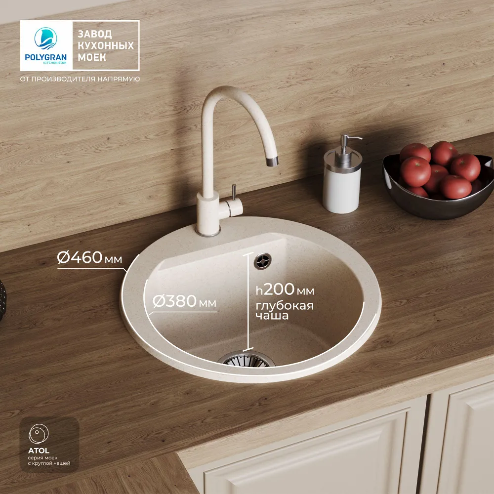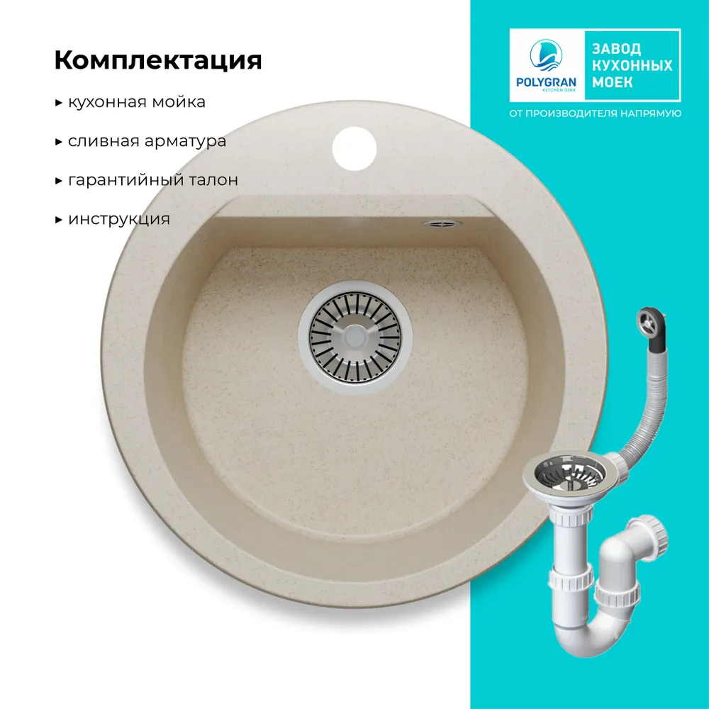 Мойка POLYGRAN ATOL-460 кремовый №327 (бежевый), смеситель SKS5 кремовый