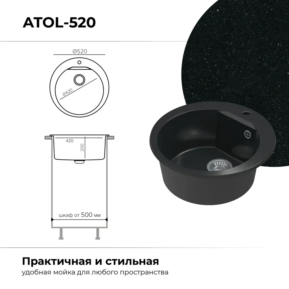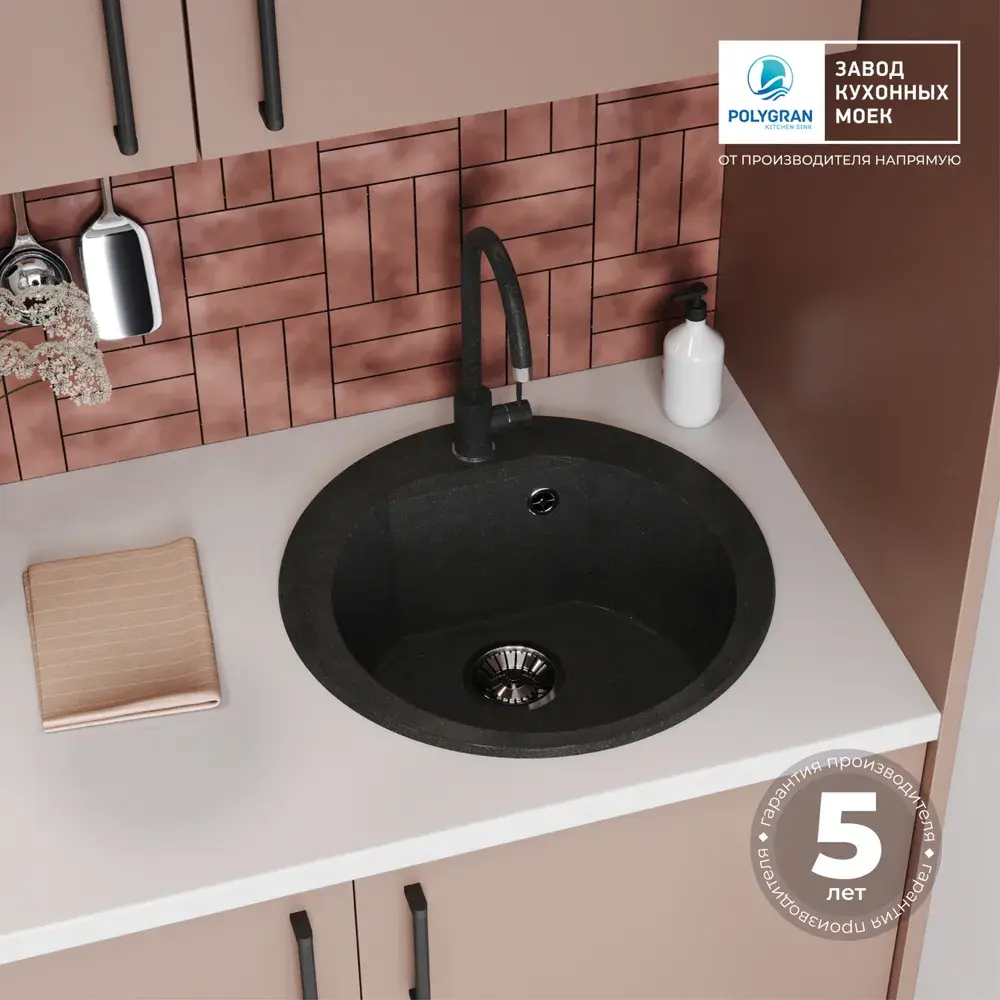 Мойка POLYGRAN ATOL-520 космос №316, смеситель SKS5 черный