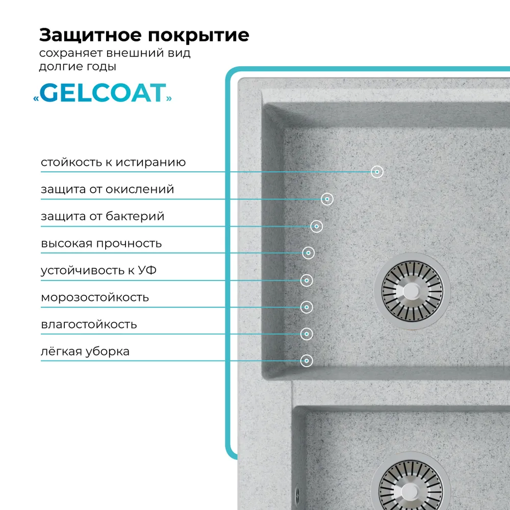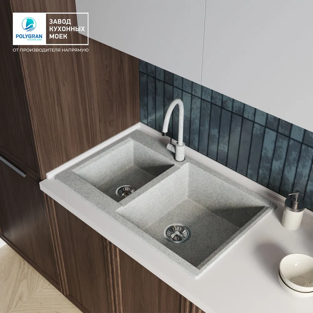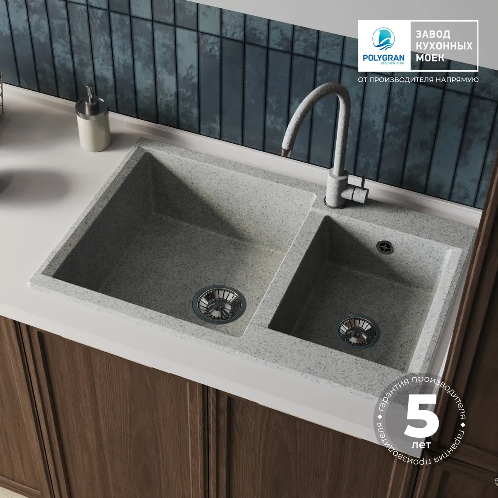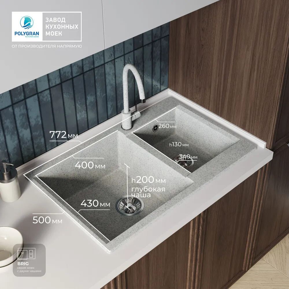 Мойка POLYGRAN BRIG-772 светло-серый №314, смеситель SKS5 светло-серый