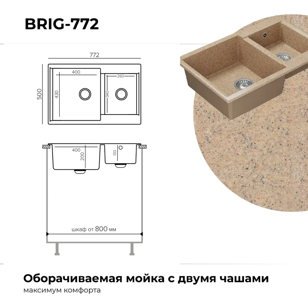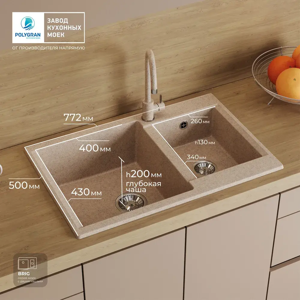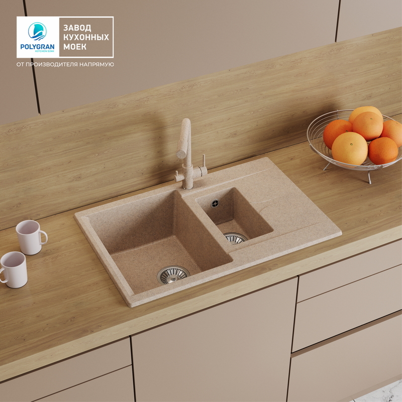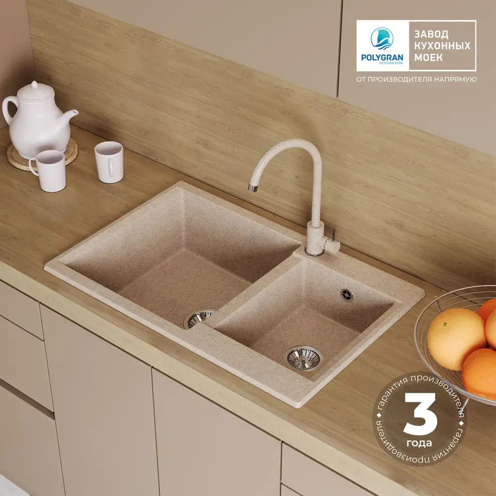 Мойка POLYGRAN BRIG-772 песочный №302,смеситель SKS5 песочный №302