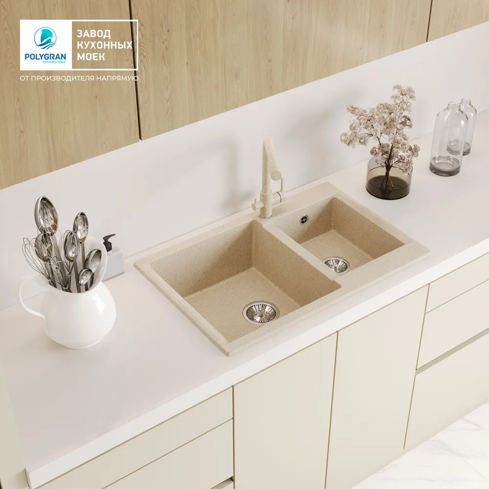 Мойка POLYGRAN BRIG-772 кремовый №327 (бежевый), смеситель DORADO сафари