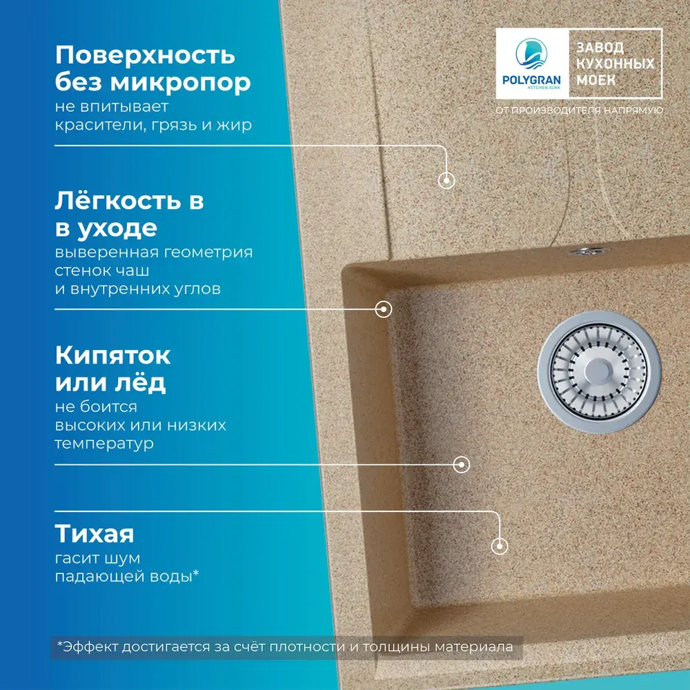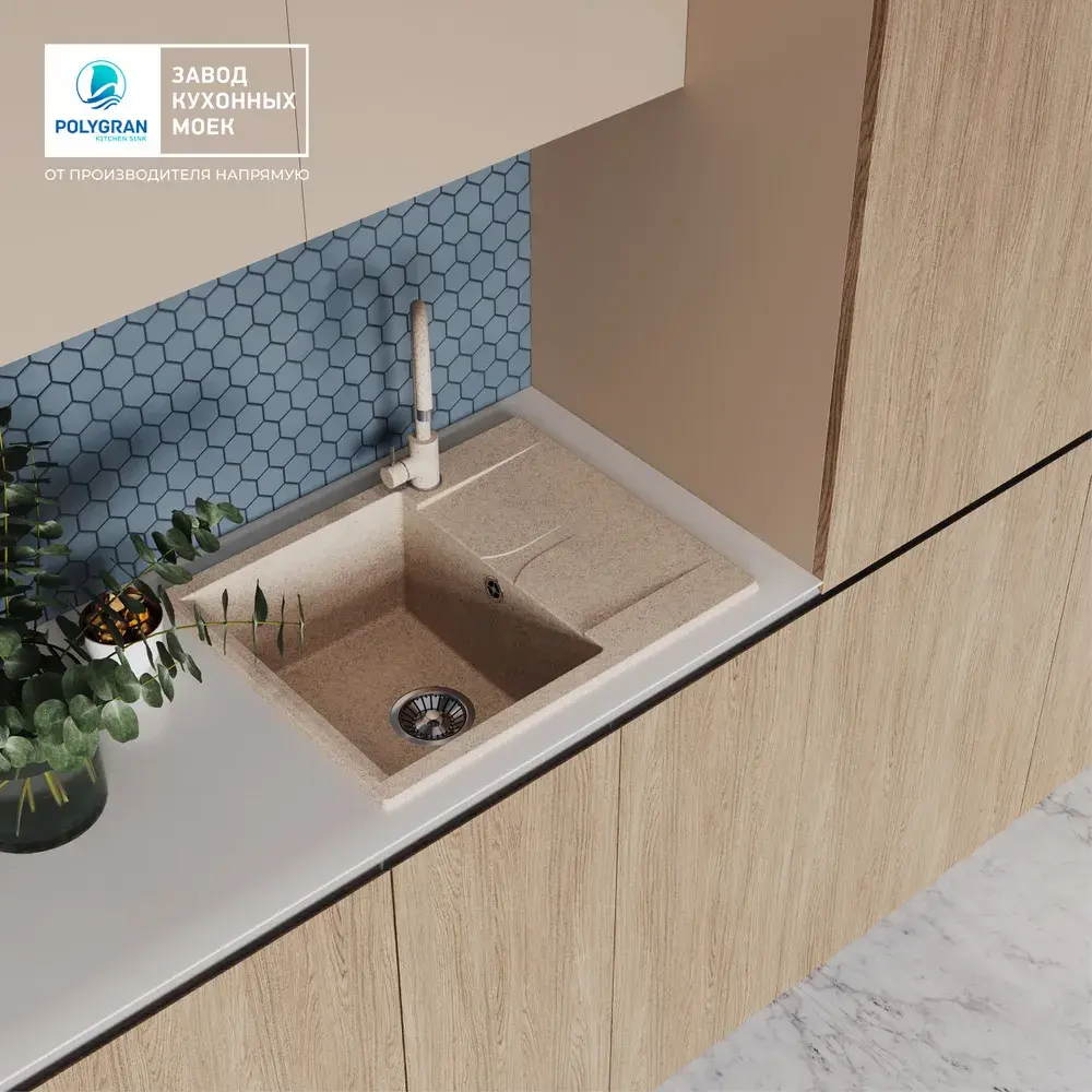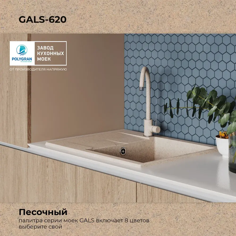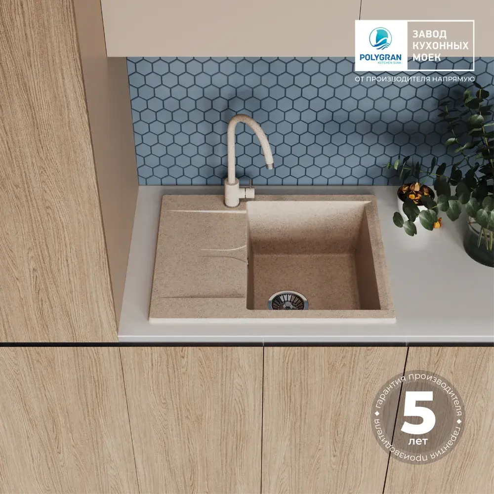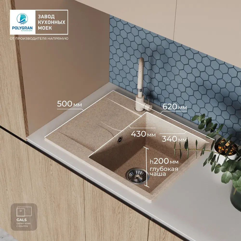 Мойка POLYGRAN GALS-620 песочный №302, смеситель SKS5 песочный №302