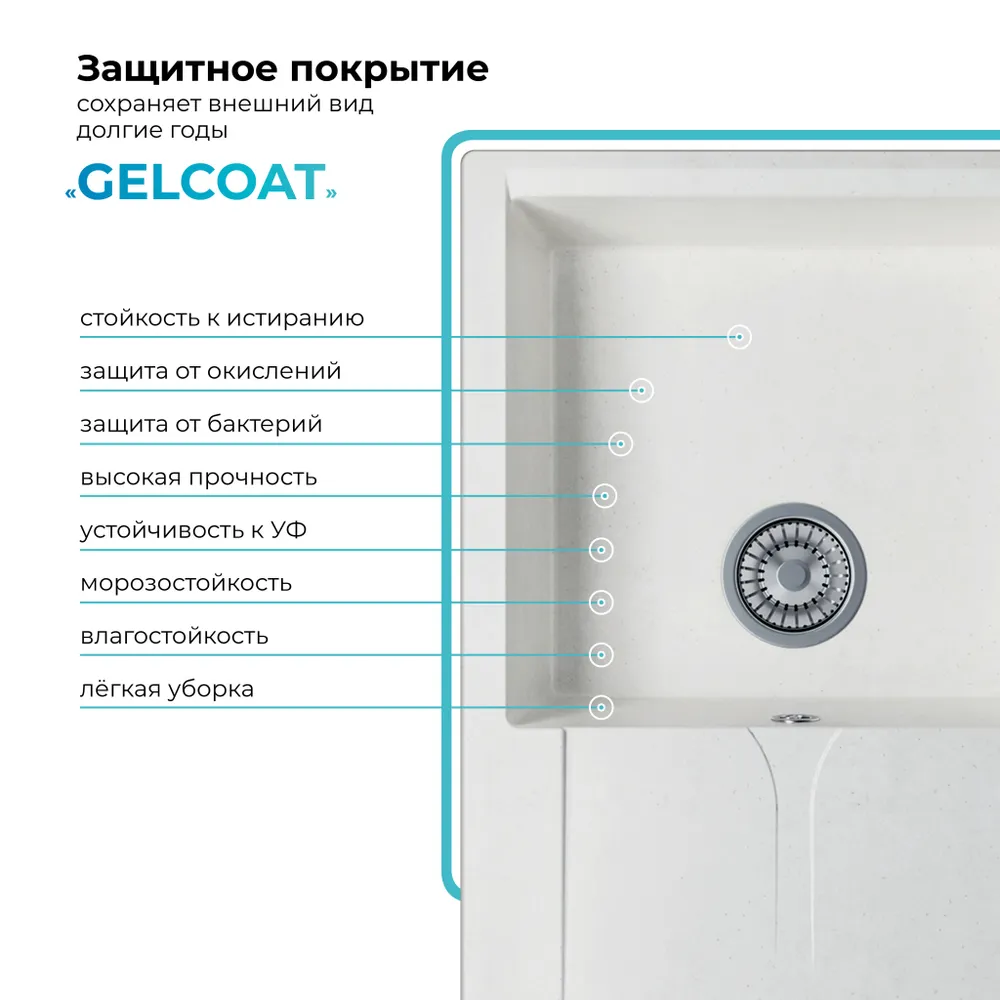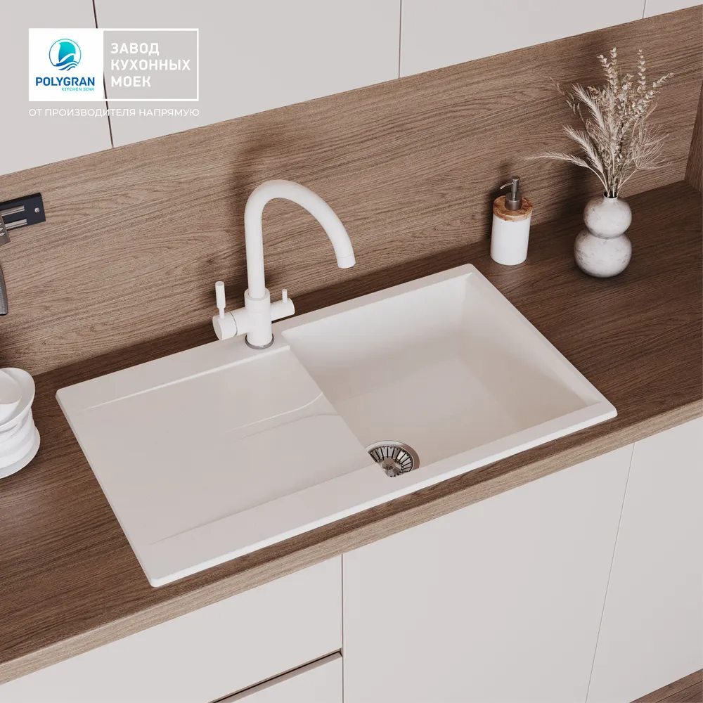 Мойка POLYGRAN GALS-760 белый хлопок №36, cмеситель COLORADO белый