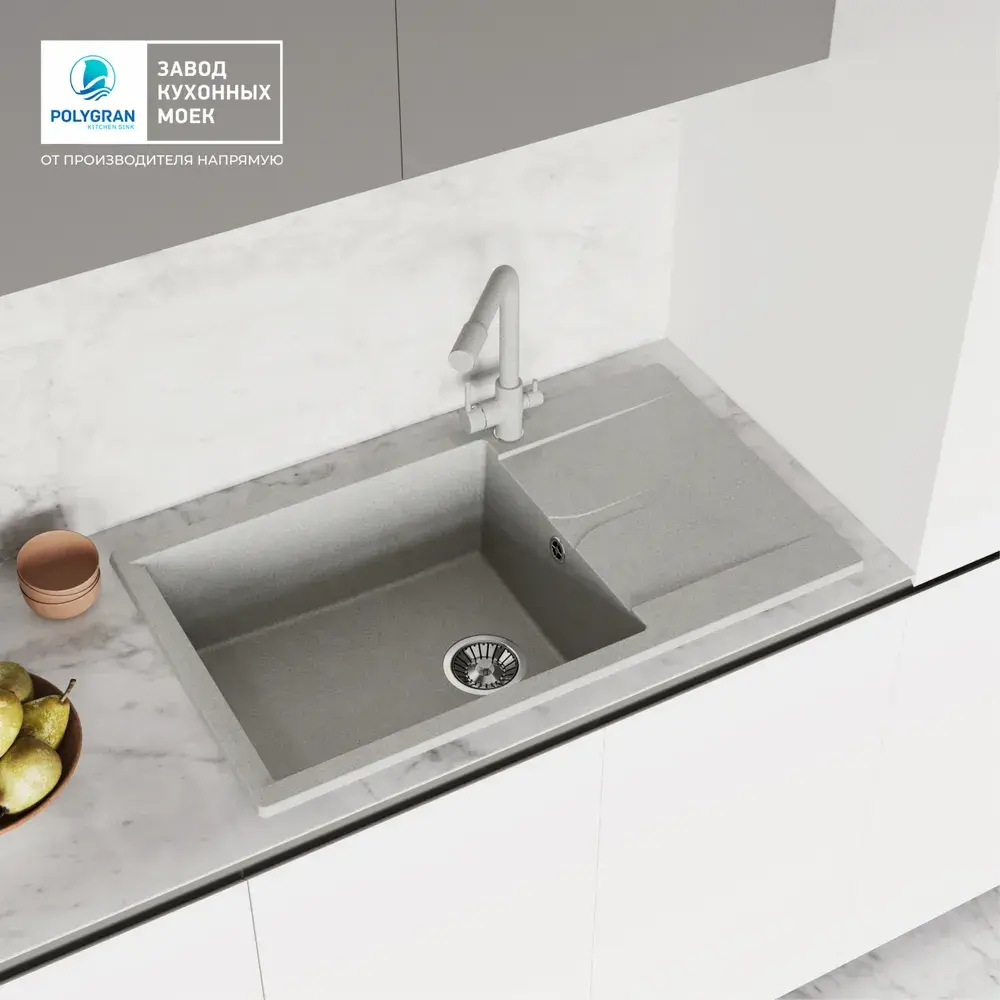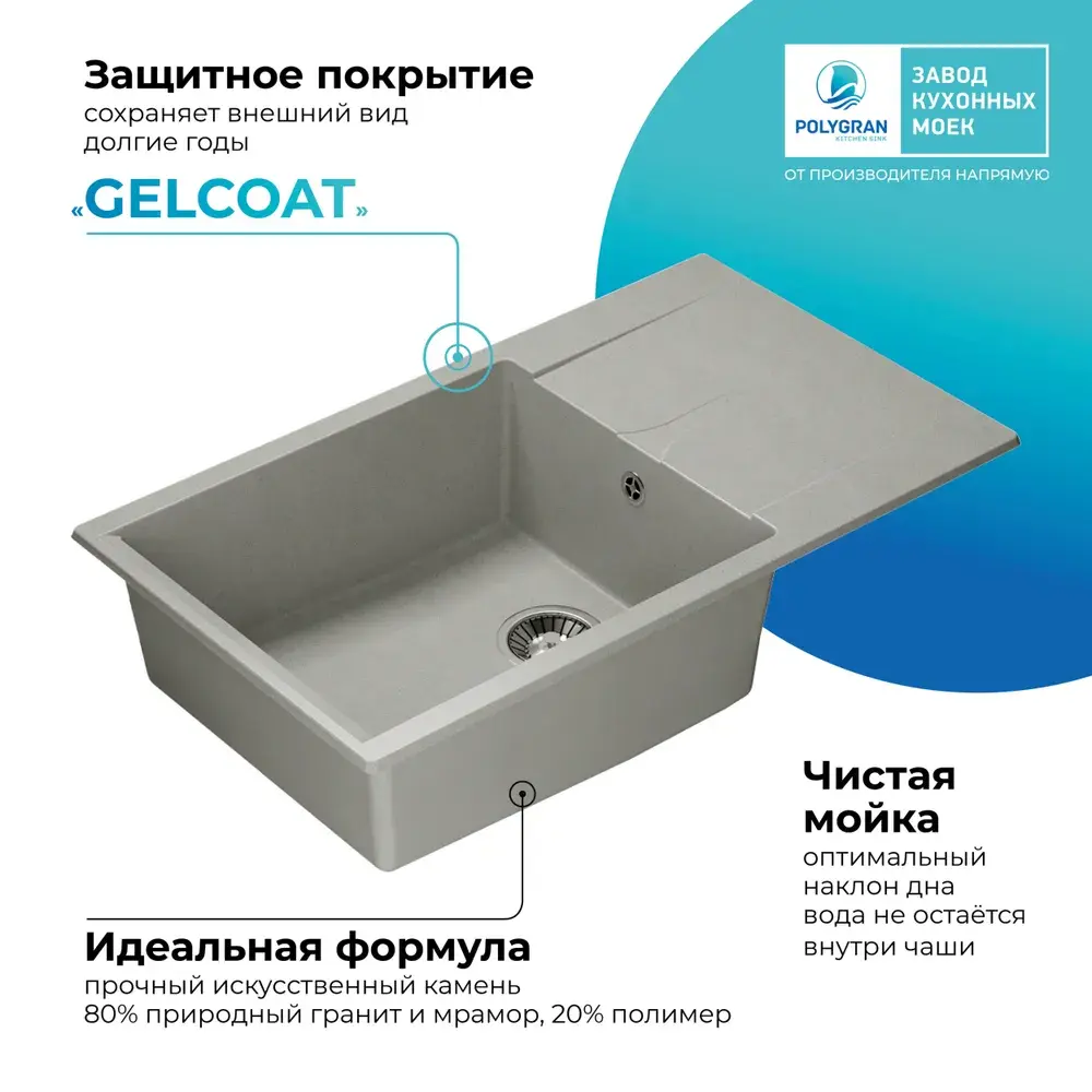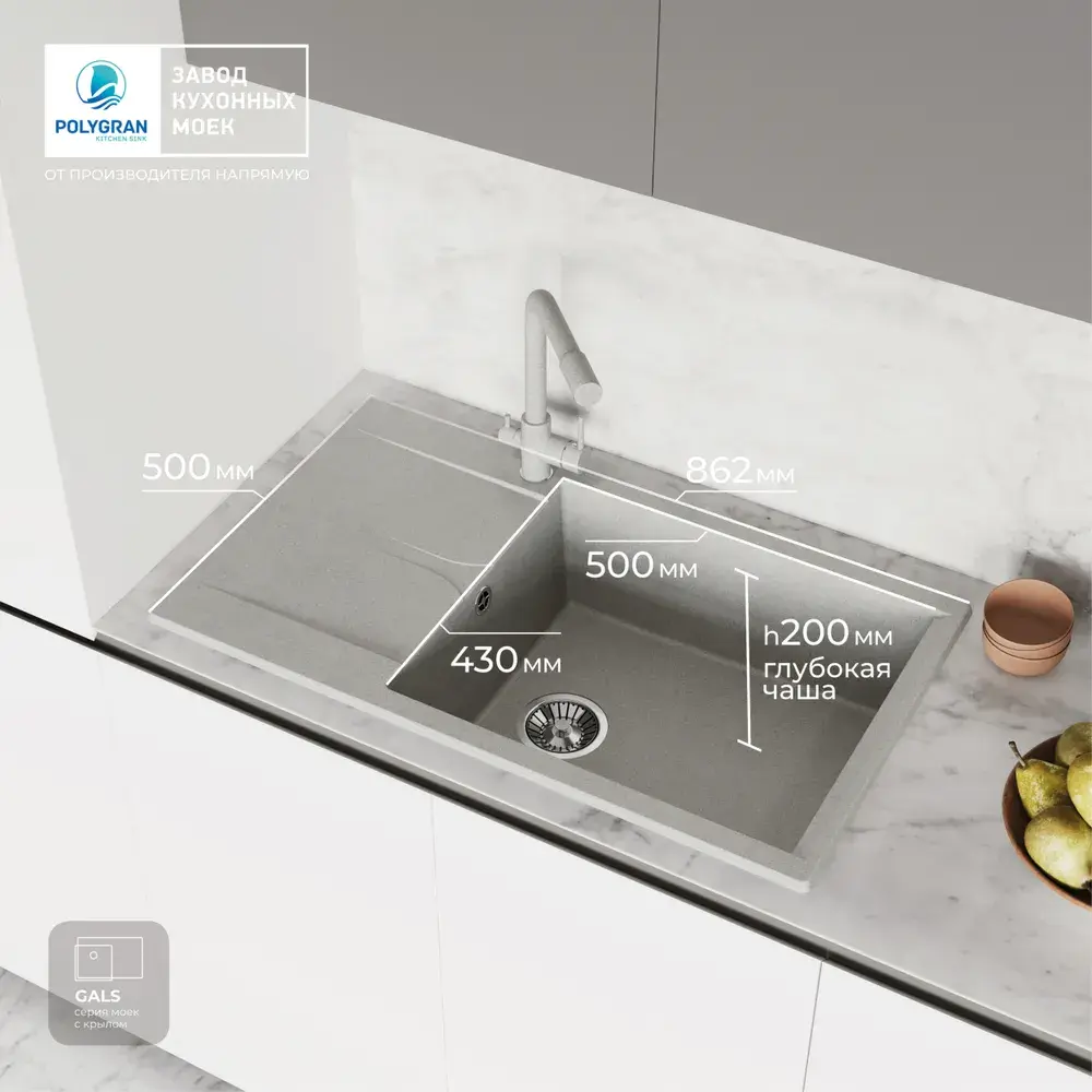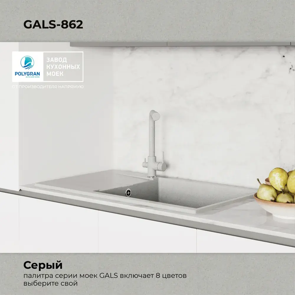 Мойка POLYGRAN GALS-862 серый №14, смеситель DORADO серый №14