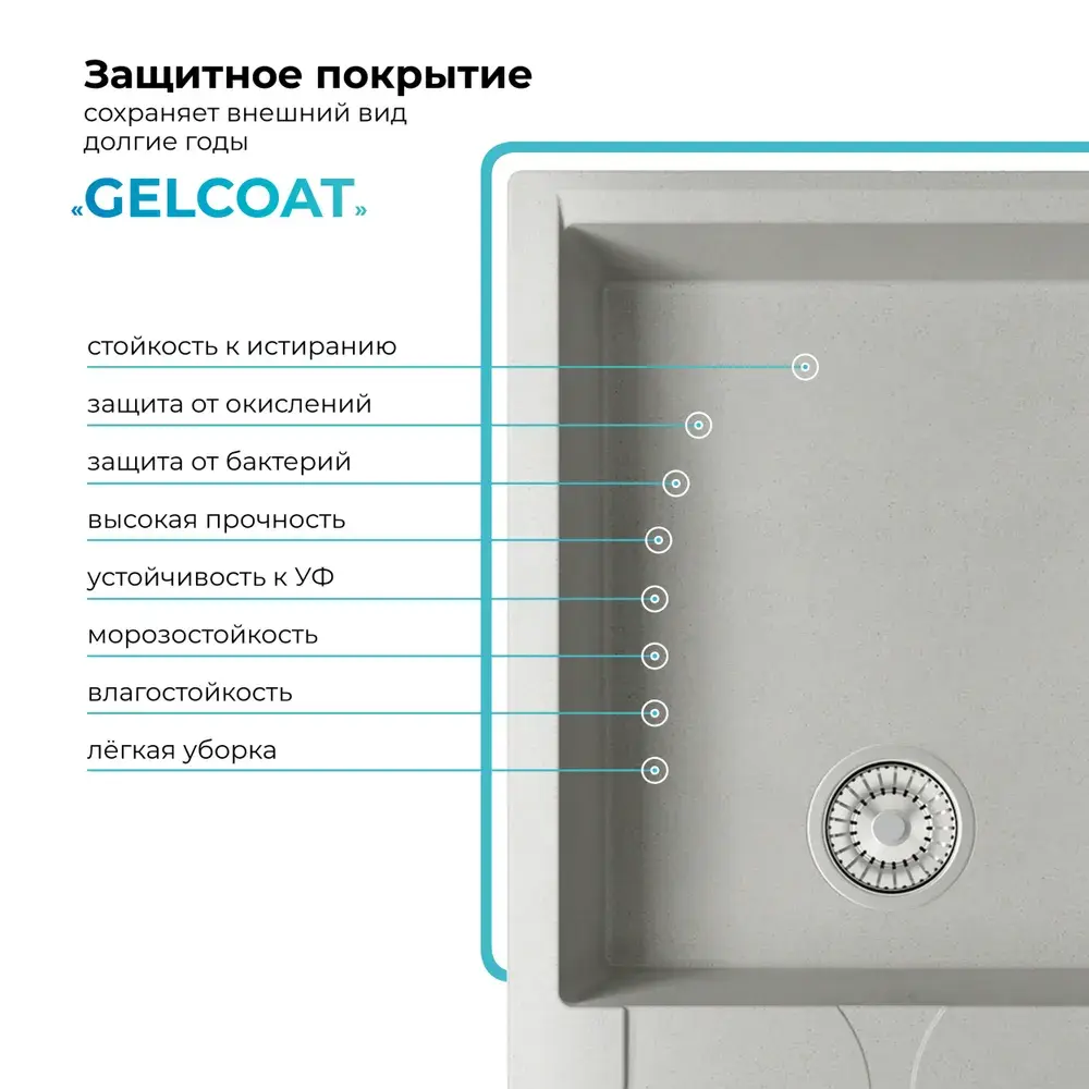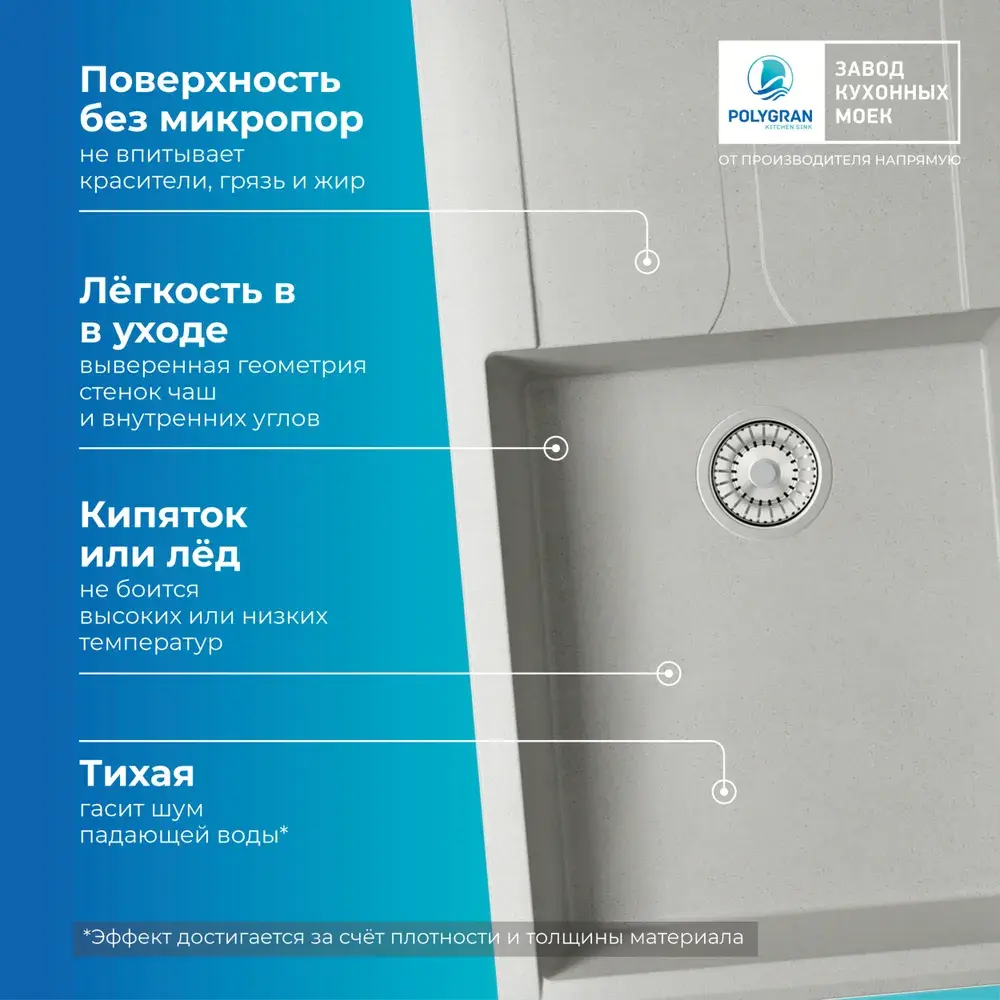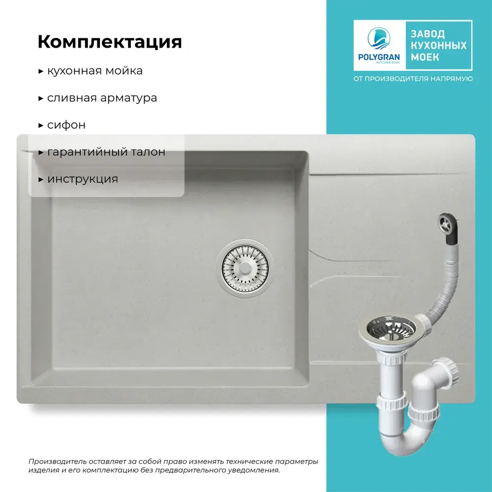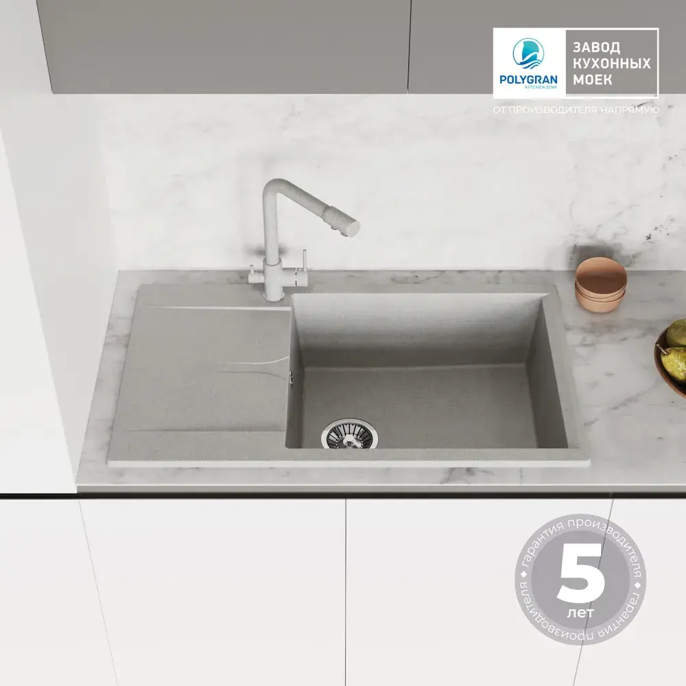 Мойка POLYGRAN GALS-862 серый №14, смеситель DORADO серый №14