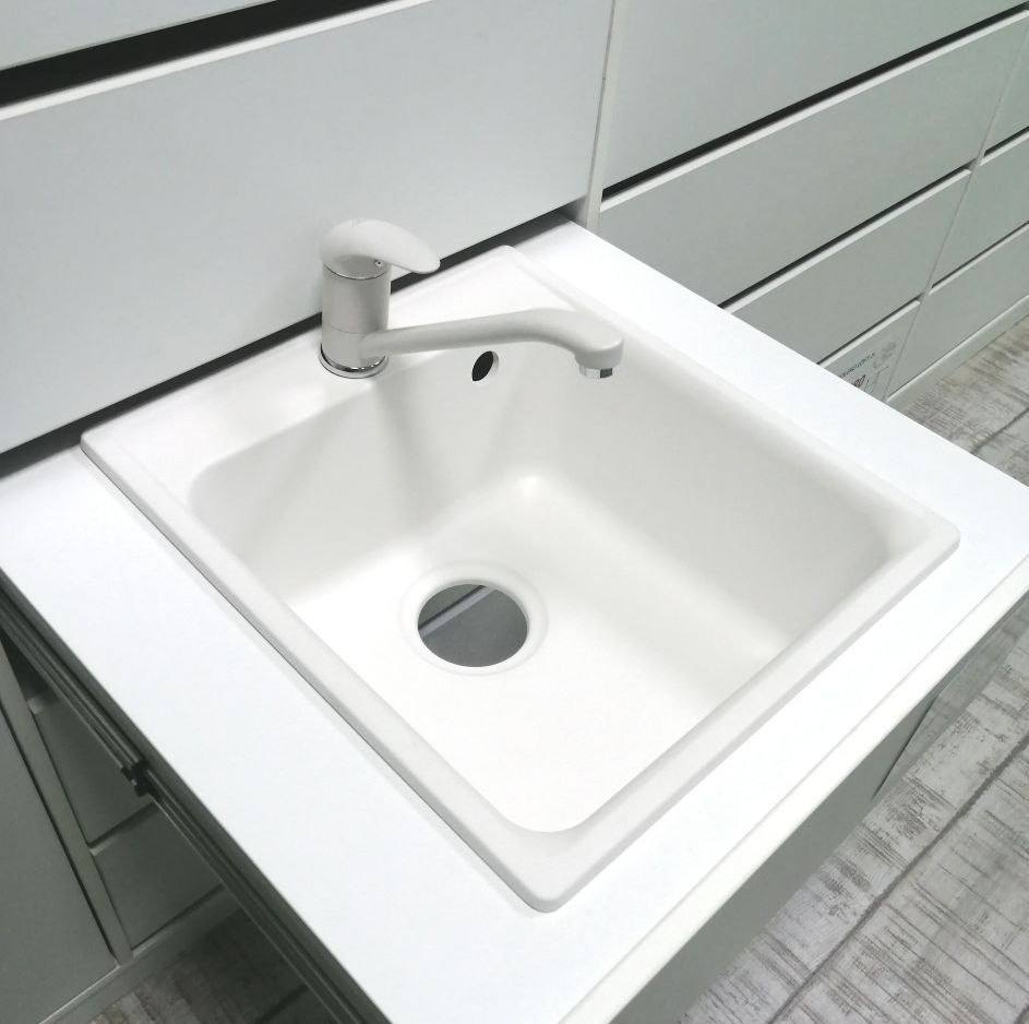 Мойка QUARTZBOND BOND-430 туман (белый), смеситель НИЗКИЙ КРАН СТАНДАРТ белый