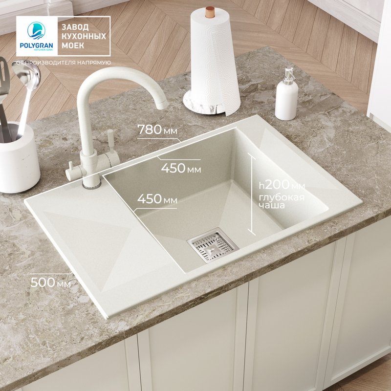 Мойка TOLERO BLADE-780 туман (белый), смеситель COLORADO белый №923 (туман)