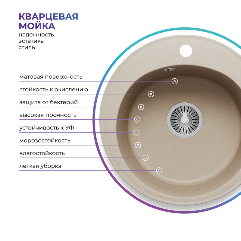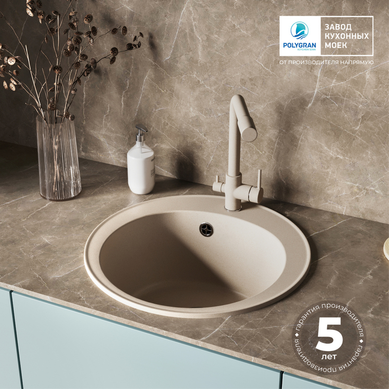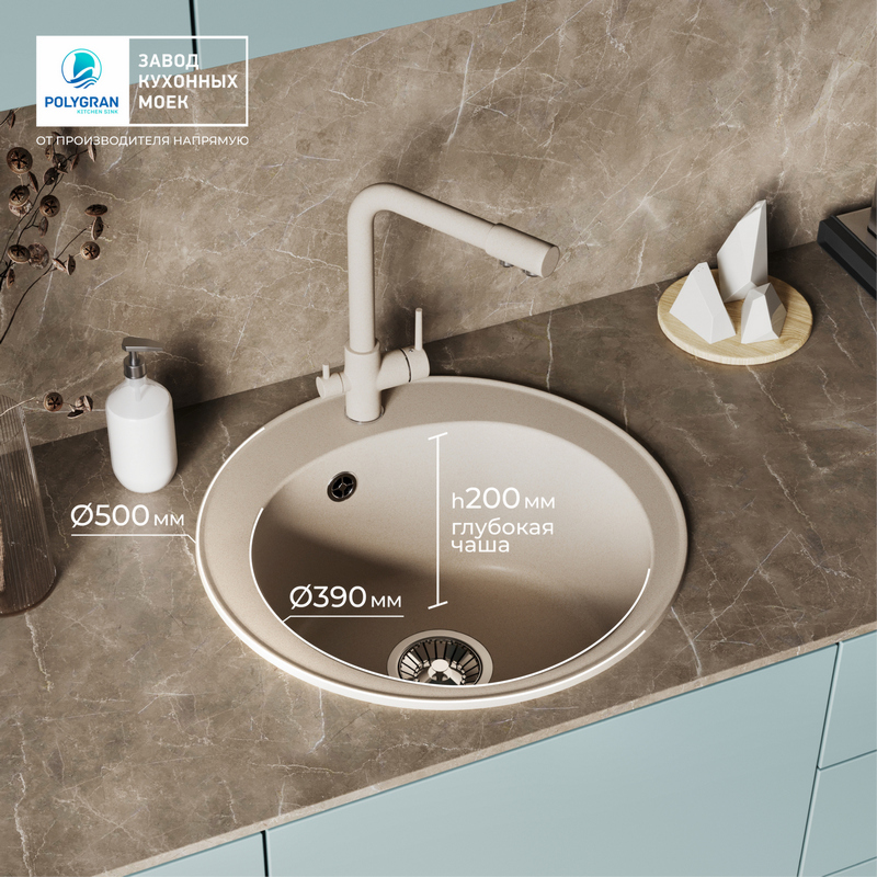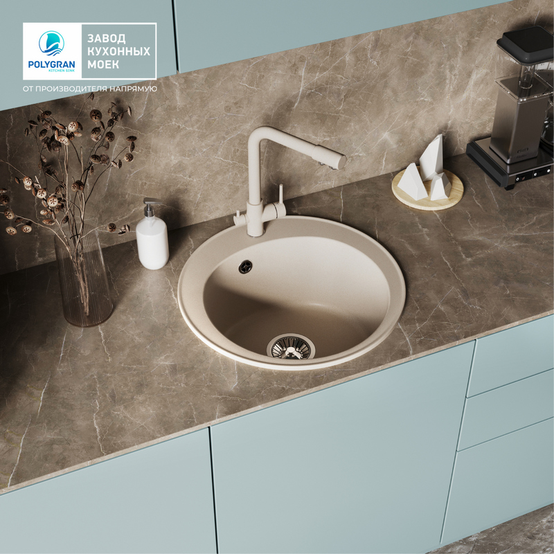 Мойка TOLERO R-108 бежевый №101С, смеситель DORADO песочный