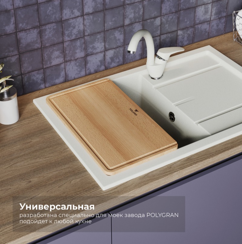 Мойка TOLERO R-112 белый №923 (туман), смеситель SKS2, доска на кухонную мойку R-112