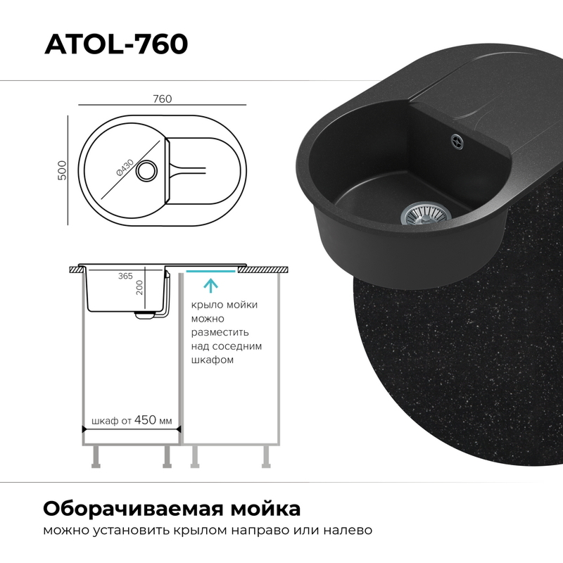 Минимальный размер тумбы от 45 см. Мойка порадует простотой ухода, отсутствием шума и большой долговечностью.