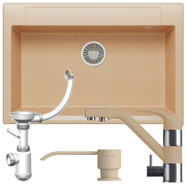 Мойка POLYGRAN ARGO-760 бежевый №27, смеситель ДУО бежевый