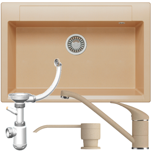 Мойка POLYGRAN ARGO-760 бежевый №27, смеситель НИЗКИЙ КРАН СТАНДАРТ бежевый