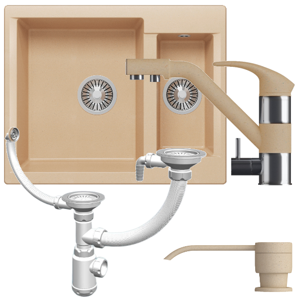 Мойка POLYGRAN BRIG-620 бежевый №27, смеситель ДУО бежевый