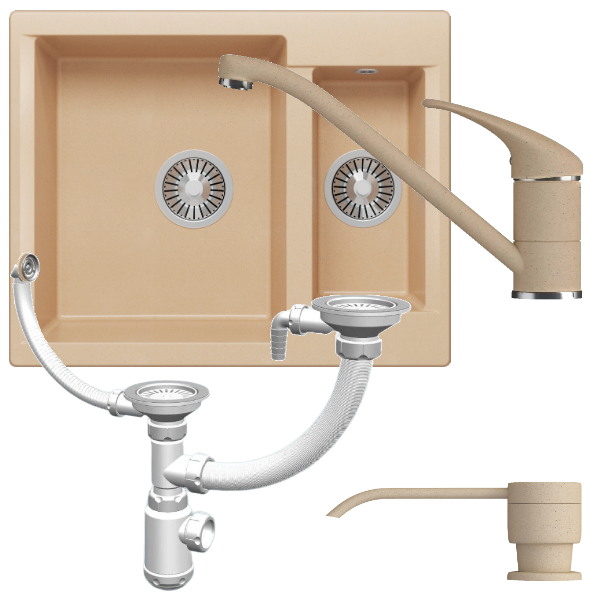 Мойка POLYGRAN BRIG-620 бежевый №27, смеситель НИЗКИЙ КРАН ЭКО бежевый