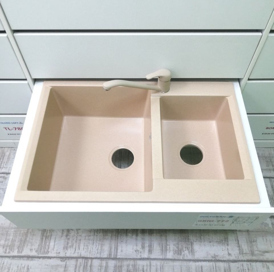 Мойка POLYGRAN BRIG-772 бежевый №27, смеситель НИЗКИЙ КРАН ЭКО бежевый