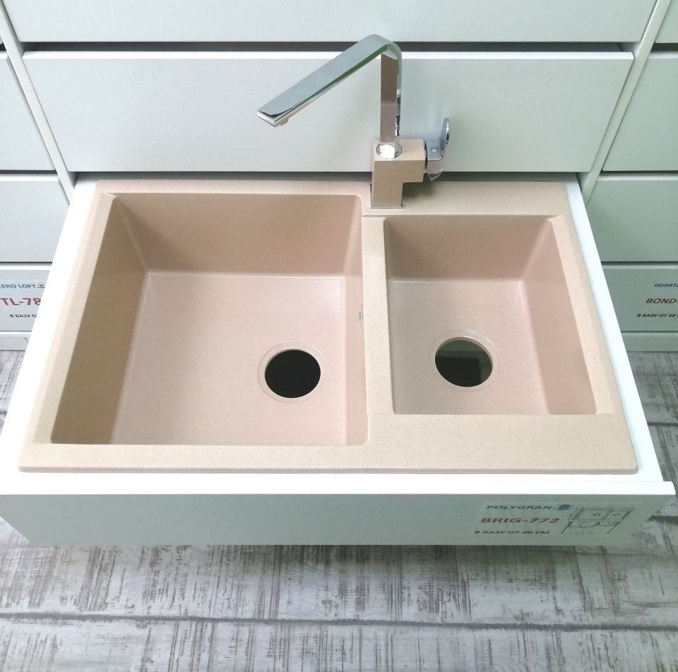 Мойка POLYGRAN BRIG-772 бежевый №27, смеситель КВАДРО бежевый
