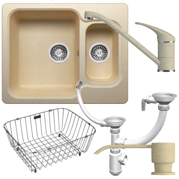 Комплект(5 предметов): мойка, смеситель, дозатор, корзина, сифон.