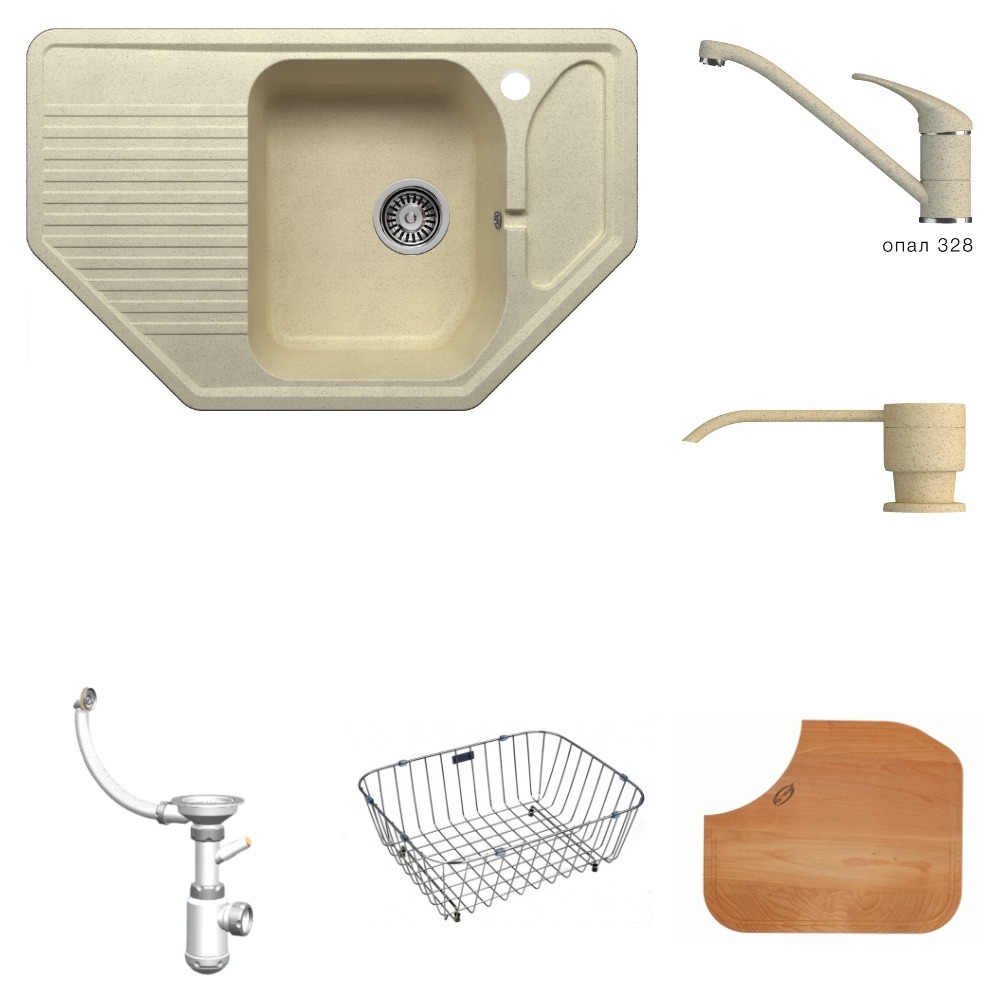 Мойка POLYGRAN F-10 опал №328, смеситель НИЗКИЙ КРАН ЭКО опал