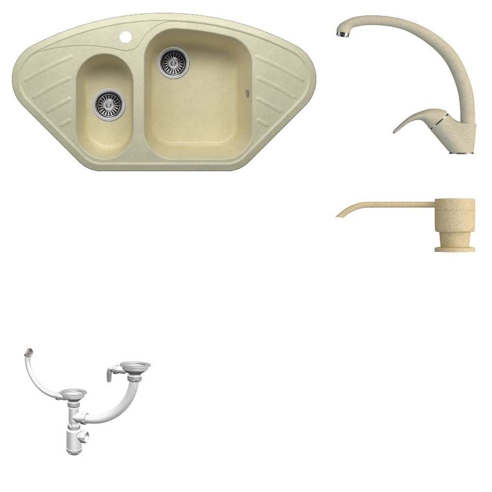 Мойка POLYGRAN F-14 опал №328 (бежевый), смеситель SKS2 опал
