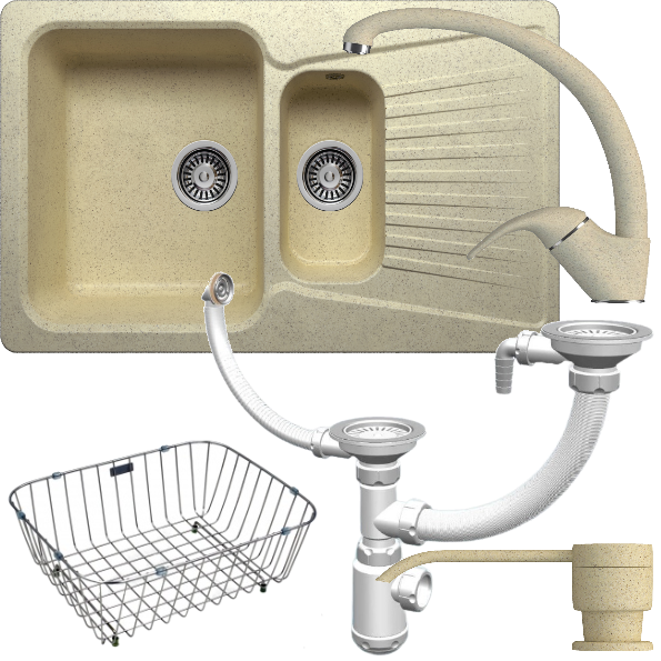 Мойка POLYGRAN F-18 опал №328 (бежевый), смеситель SKS2 опал