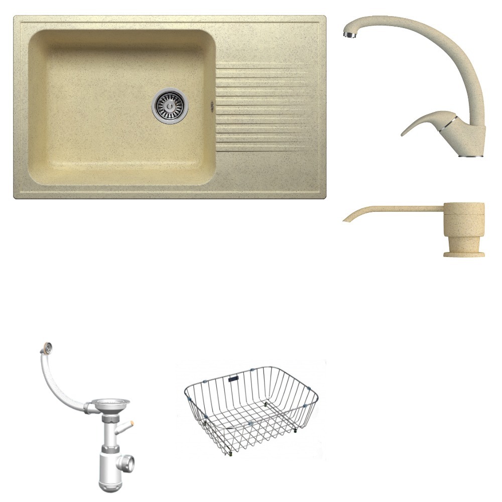 Мойка POLYGRAN F-19 опал №328 (бежевый), смеситель ВЫСОКИЙ КРАН ЭКО опал