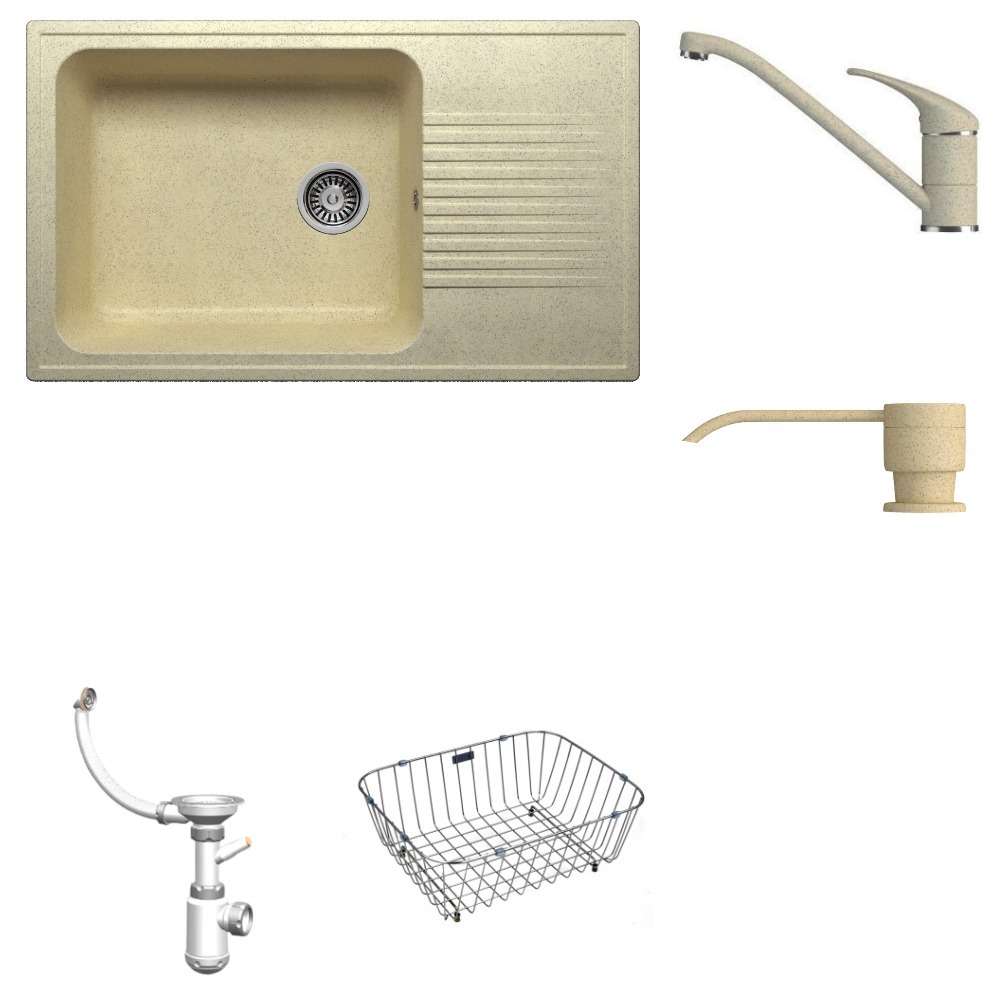 Мойка POLYGRAN F-19 опал №328 (бежевый), смеситель НИЗКИЙ КРАН СТАНДАРТ опал