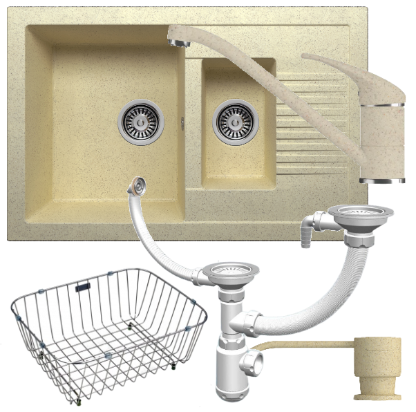 Комплект(5 предметов): мойка, смеситель, дозатор, корзина, сифон.