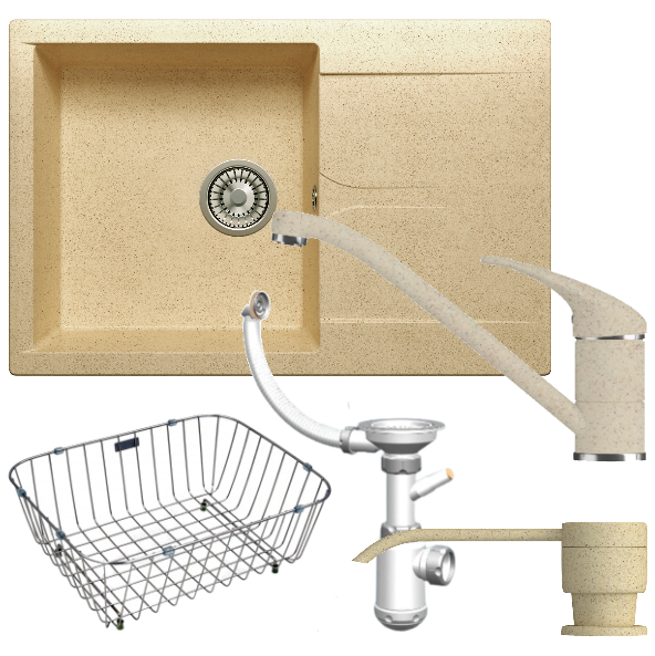 Комплект(5 предметов): мойка, смеситель, дозатор, корзина, сифон.