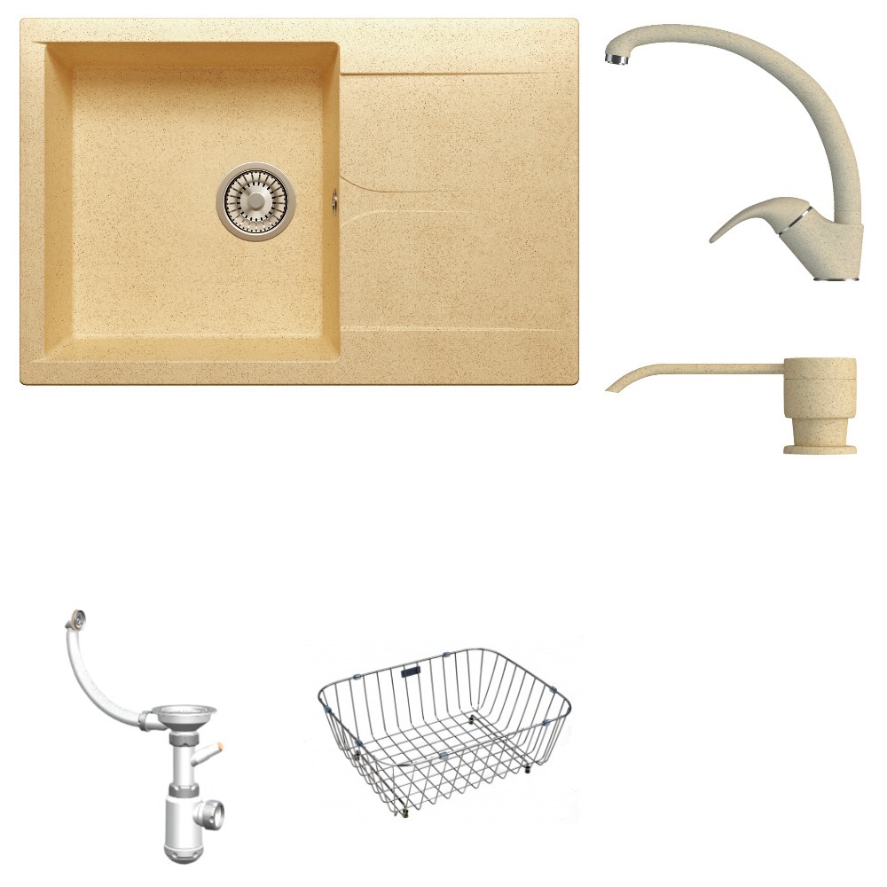 Комплект(5 предметов): мойка, смеситель, дозатор, корзина, сифон.
