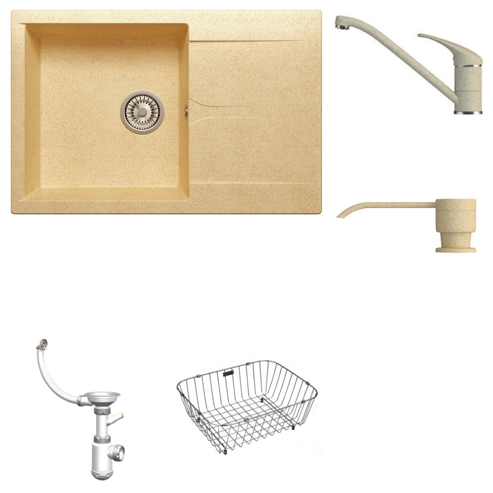 Комплект(5 предметов): мойка, смеситель, дозатор, корзина, сифон.