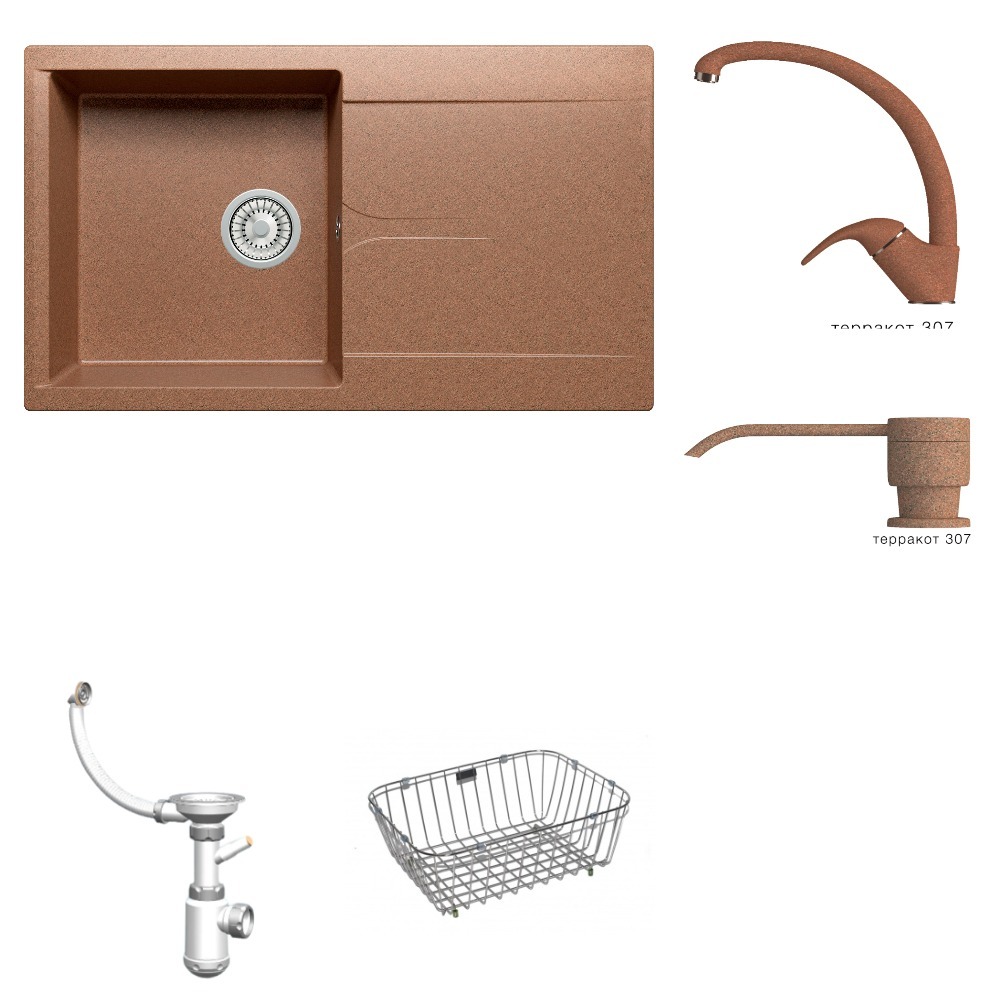 Мойка POLYGRAN GALS-860 терракот №307, смеситель SKS2 терракот