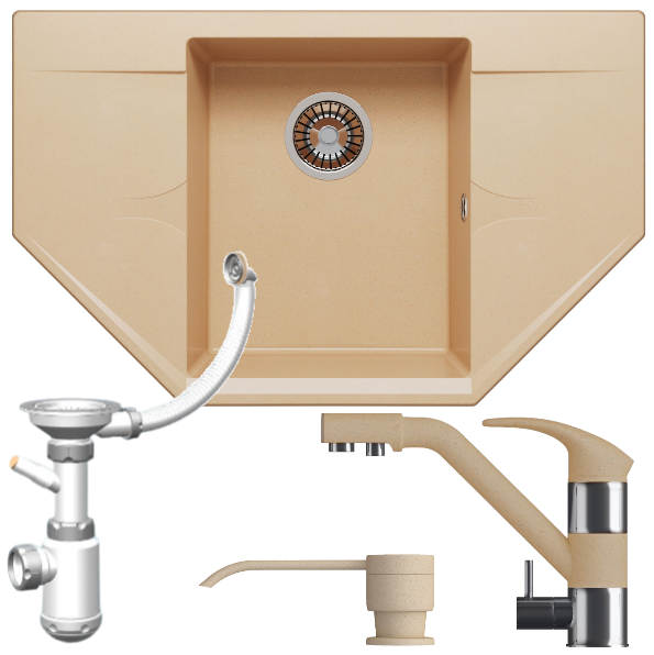 Мойка POLYGRAN RIFF-800 бежевый №27, смеситель ДУО бежевый