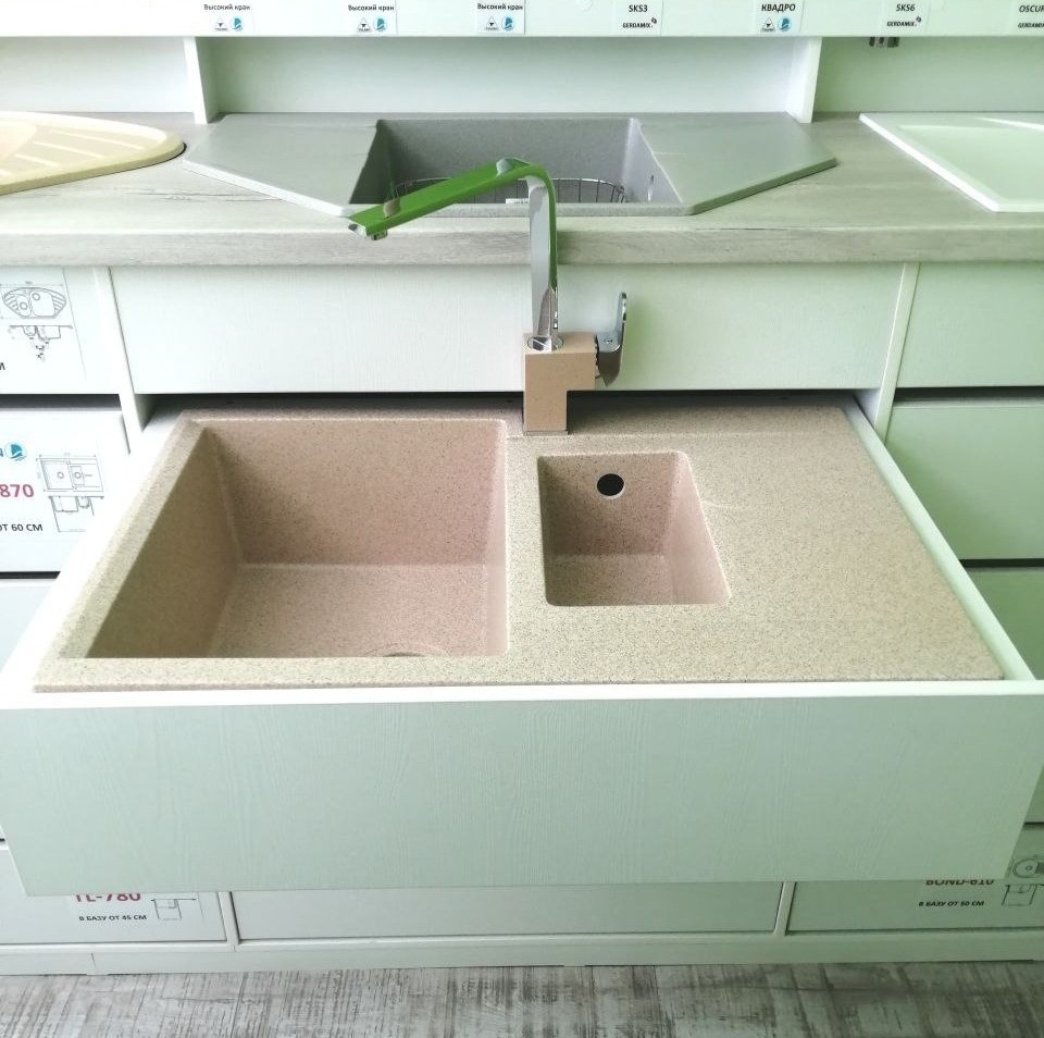 Мойка POLYGRAN BRIG-770 песочный №302, смеситель КВАДРО бежевый