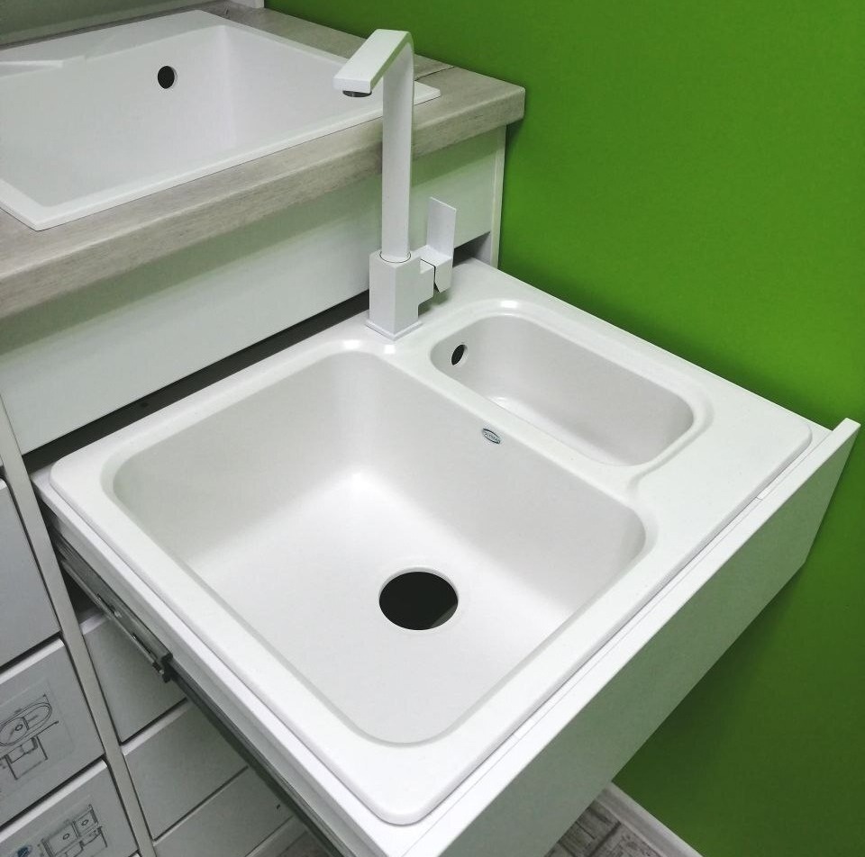 Мойка POLYGRAN F-09 белый хлопок №36, смеситель OSCURO белый хлопок